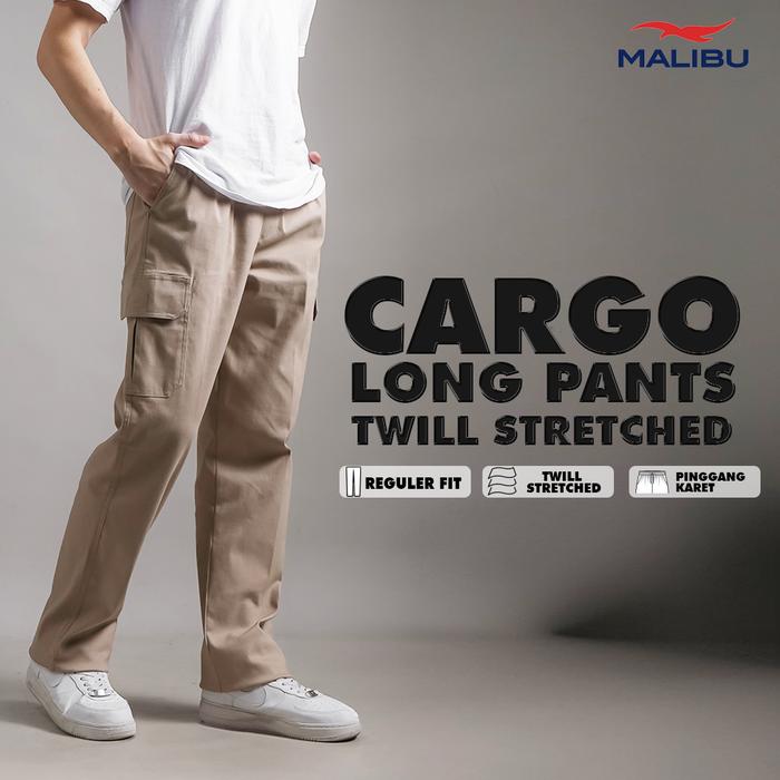 Malibu Cargo Panjang Long Pants Cotton Katun Twill Stretch Casual - Seri 1 Celana Pria Dewasa - Mlpj 03 Hitam, M