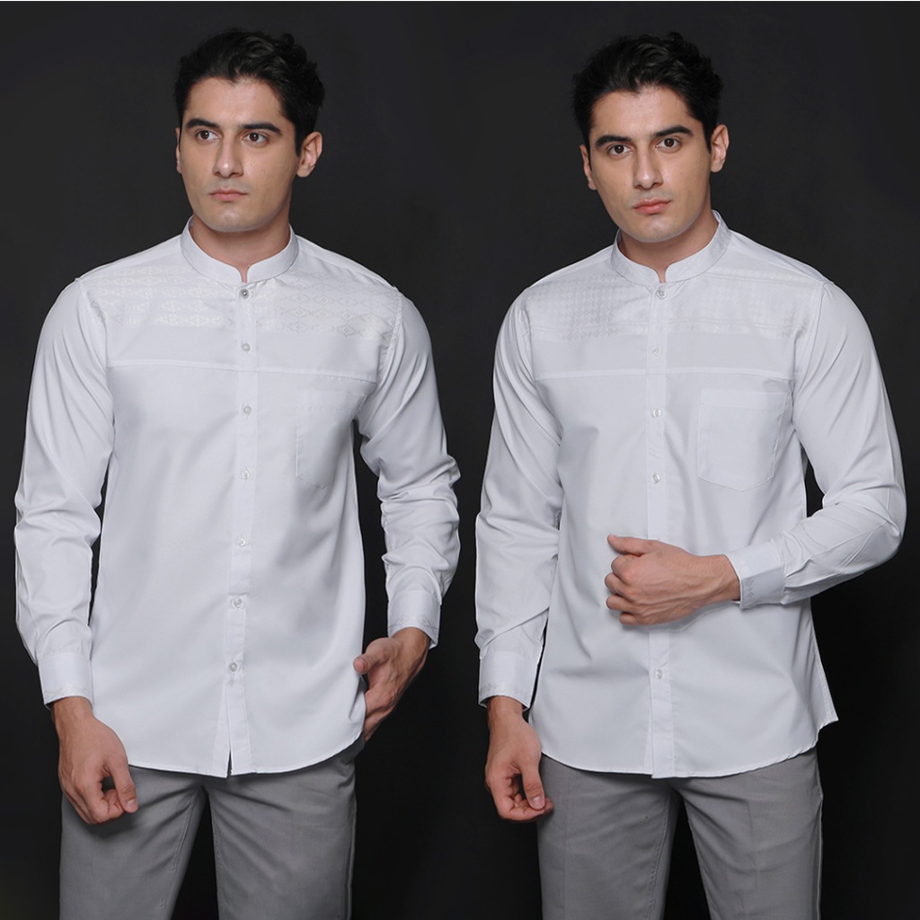 Casella Baju Koko Pria Lengan Panjang Horizontal White | Baju Koko Putih Ismail