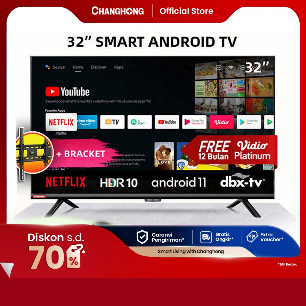 CHANGHONG 32 INCH NEWEST ANDROID 11 FRAMELESS SMART TV DIGITAL NEFLIX LED TV-L32G7N-GARANSI 3 RESMI FREE BRACKET