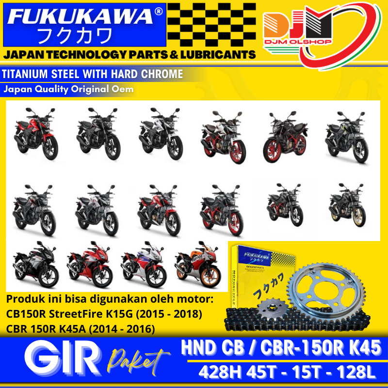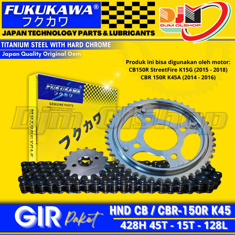 Gear Set ALL NEW CB150R CBR 150R Rantai 428H-128L-45T-15T Lubang 4 FUKUKAWA