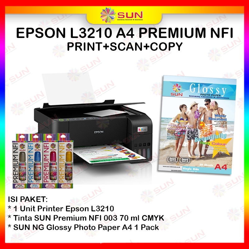 Paket Printer Epson Cetak Foto NFI L121 / L1210 / L1250 / L1251 / L3210 / L3211 / L3250 / L5290 - Print Wifi Scan Copy
