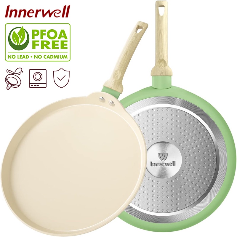 Innerwell 28CM Hijau Wajan Anti Lengket Pancake Panci Crepe Panci Telur Keramik Pizza Wajan Penggorengan Bebas PFOA Coco
