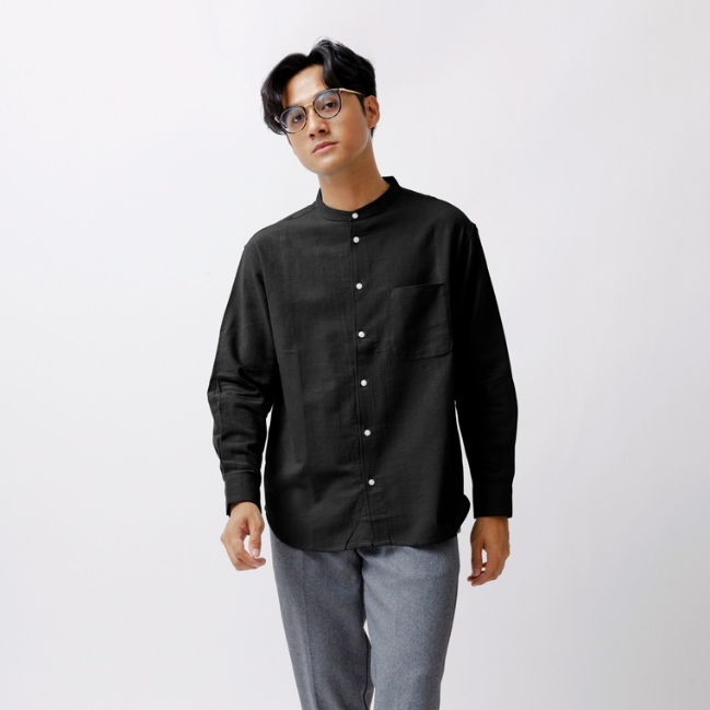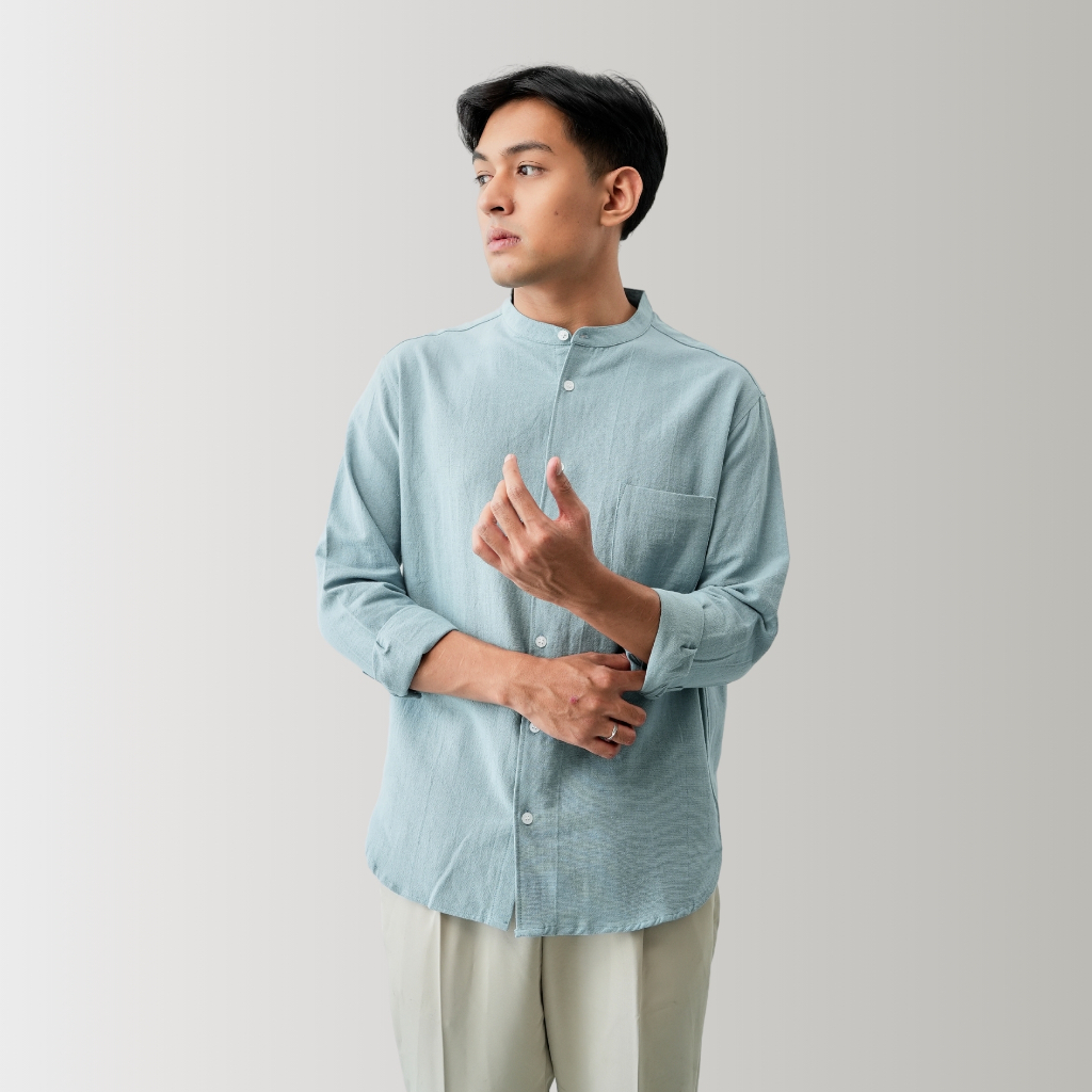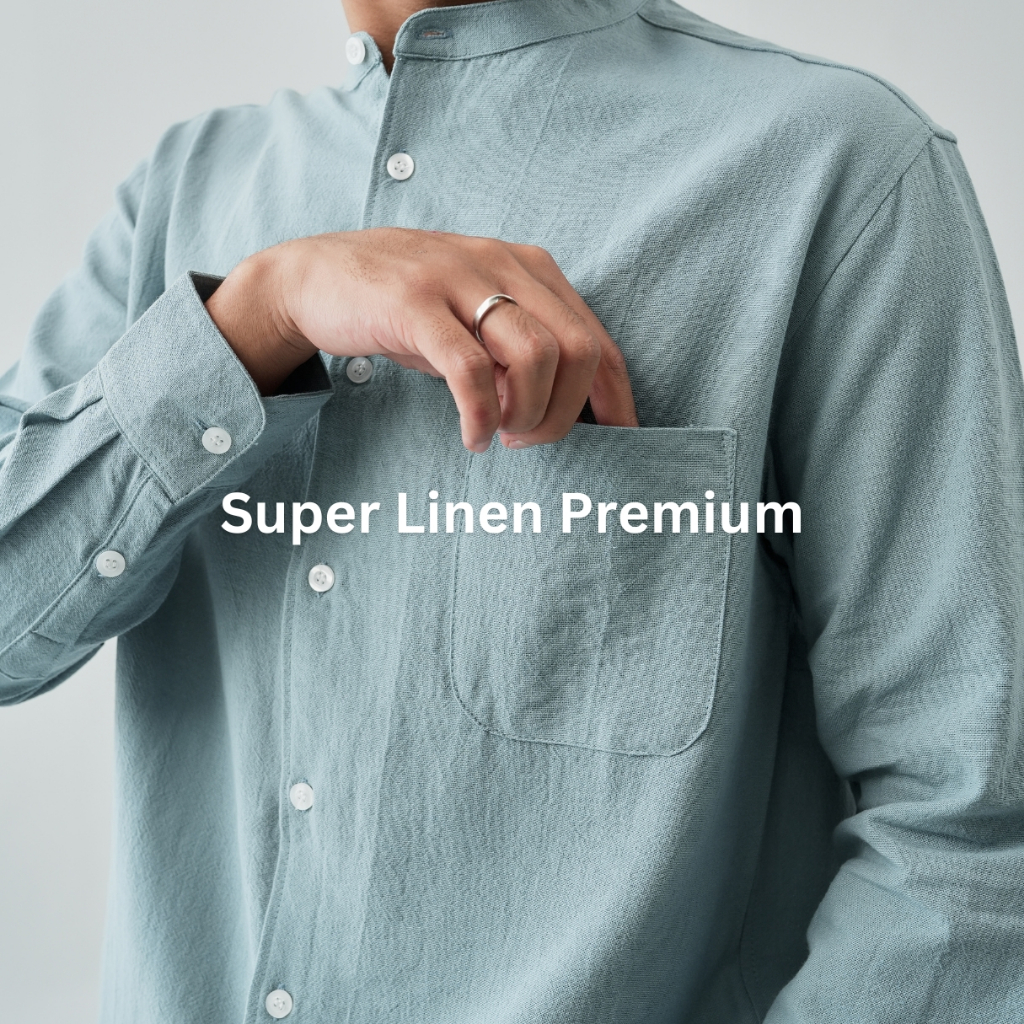Divsouth Kemeja Koko Pria Kerah Shanghai Panjang Polos Linen Oxford Cozy