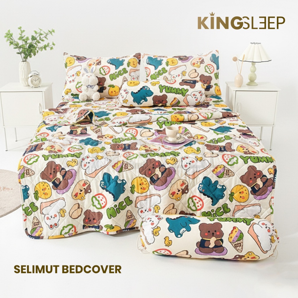 Bedcover Set Sprei Selimut Sarung Bantal dan Sarung Guling 120/160/180X200CM Seprei Set -King Sleep