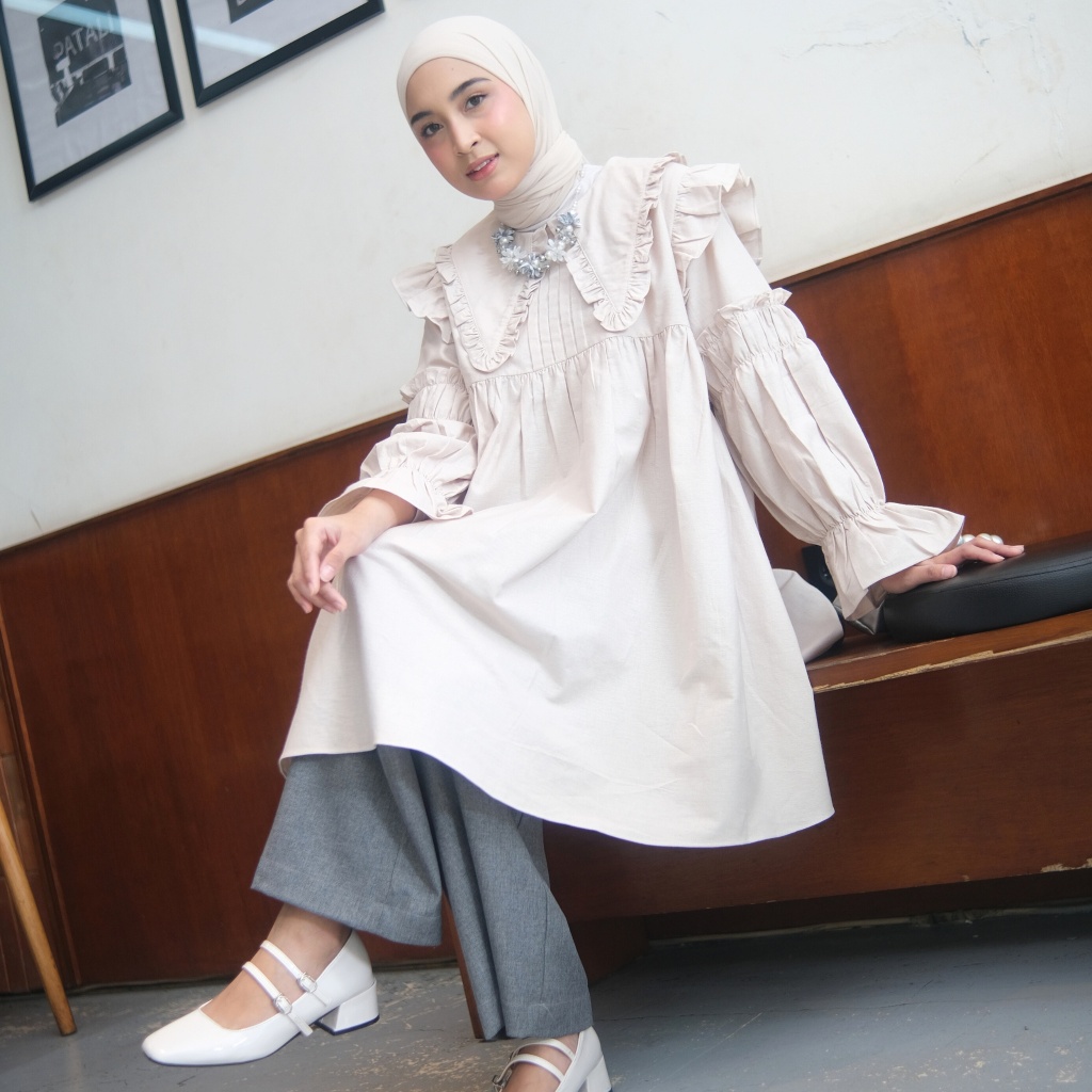 Eclemix Atasan Wanita Kerah Peter Pan | Tunic Shinara | Tunik Frill Lengan Panjang