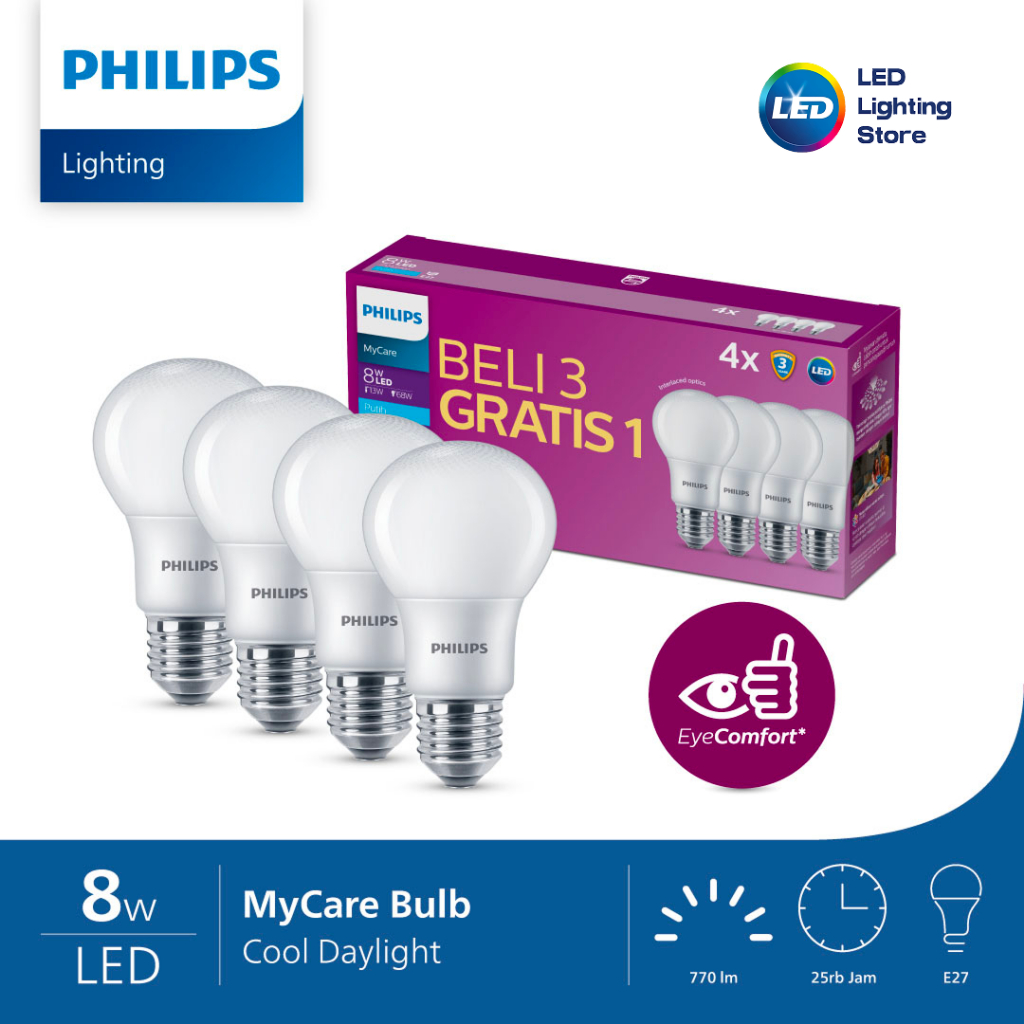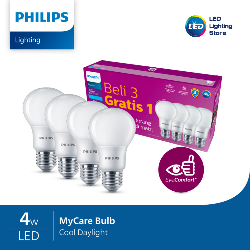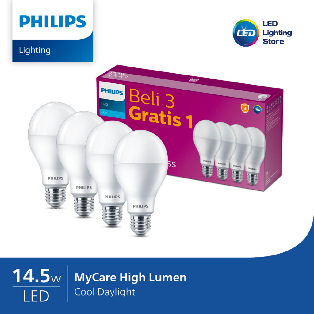Promo Beli 3 Gratis 1 Lampu Bohlam Philips LED Bulb 4W 6W 8W 10W 12W 14.5W Watt Multipack MyCare - Cahaya Putih (6500K Cool DayLight)