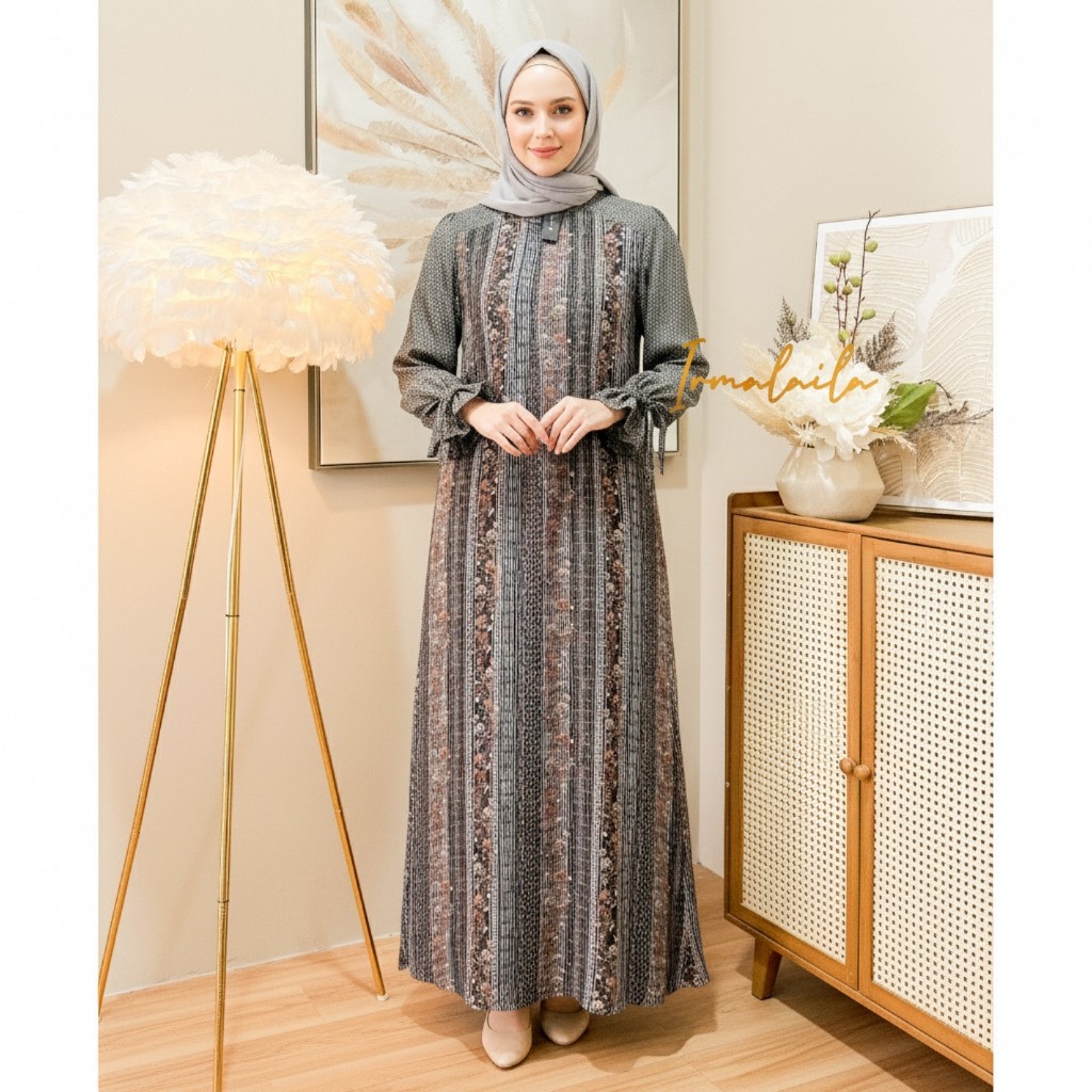 Ellena Dress Gamis Wanita Rayon Motif Mix Rayon Jaguard Lembut Adem Nyaman Daily Bumil Dan Busui Friendly By Irmalaila