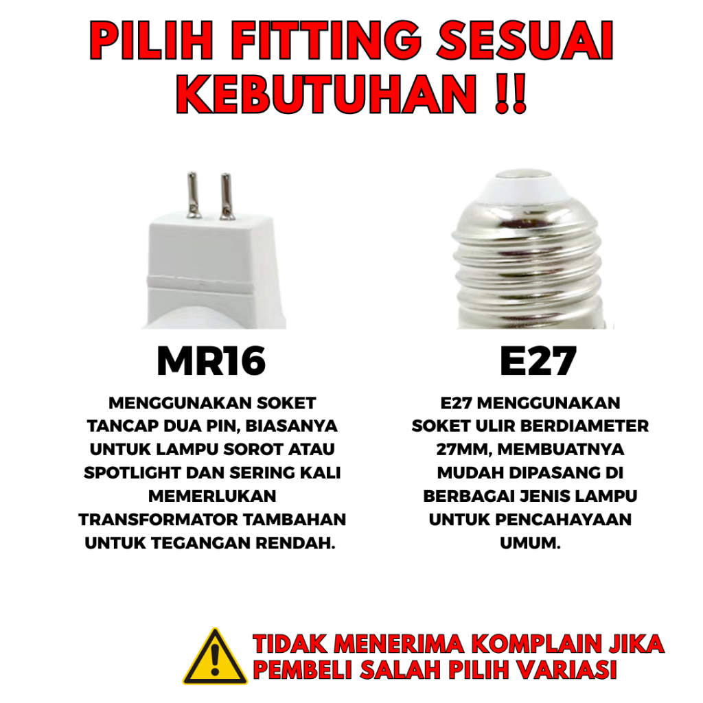Paket 10Pcs Lampu Halogen SpotLight LED 7W E27 & MR16 COB Sorot Cahaya Putih Kuning