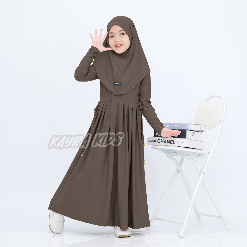 Gamis Abaya Anak Inara Serut Pinggang Usia 0-9 Tahun Bahan Jersey Lembut Dan Adem Free Hijab Muslim Panjang Nyaman