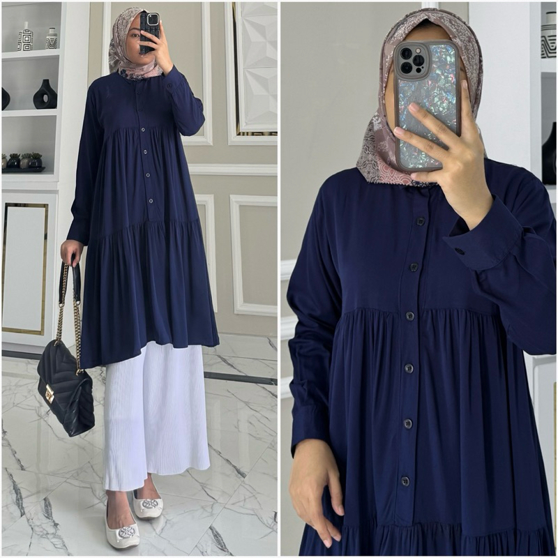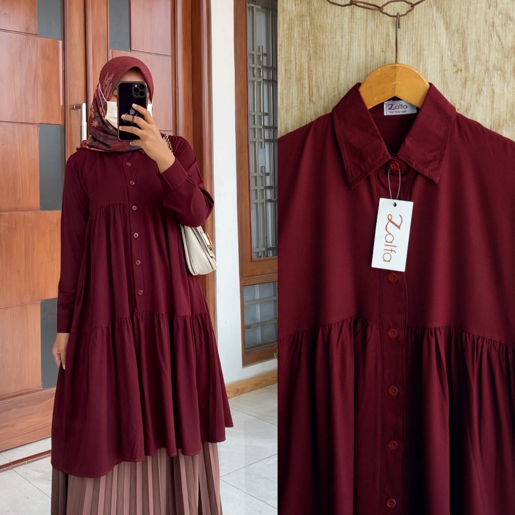 Haruka Tunik By Zalfa Outfit / Baju Atasan Wanita Muslim Tunik Kerja Kuliah Basic Polos Rayon Twill Premium Lengan Panja
