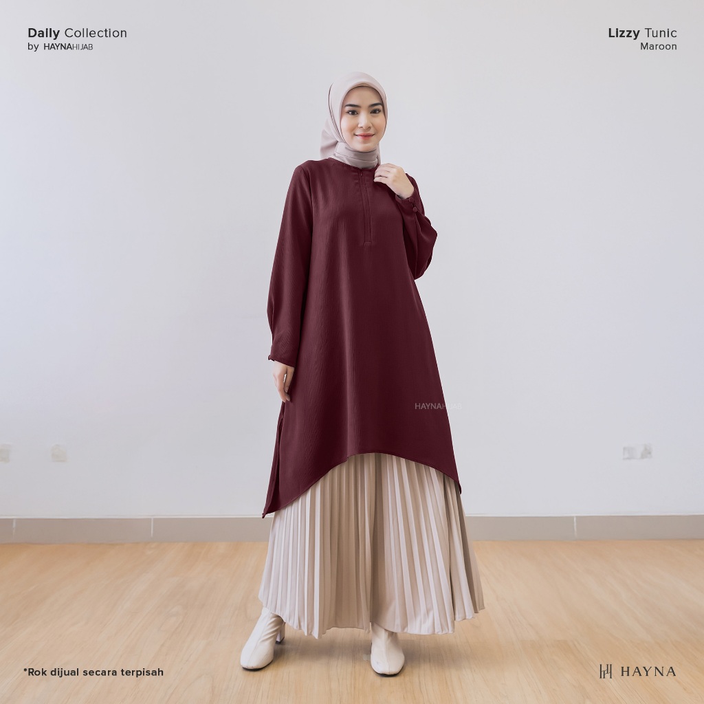 Hayna Lizzy Tunik (Maroon) - Tunic Atasan Wanita Lengan Panjang