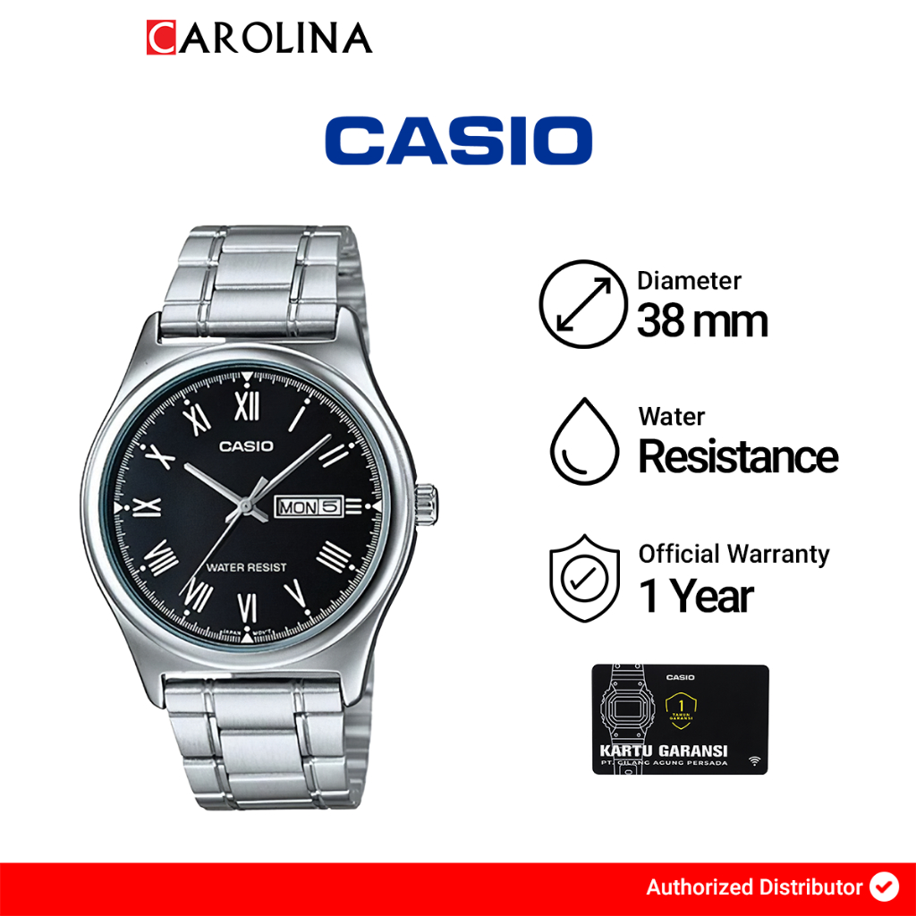 Jam Tangan Pria Casio General Mtp-V006D-1B Black Dial Stainless Steel Band