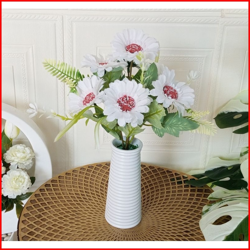 Bunga Krisan Artificial Vas Ulir Panjang Plastik