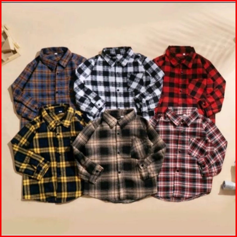 Kemeja Flanel Anak Umur 8-15 Tahun Kotak-kotak Lengan Panjang Kualitas Premium