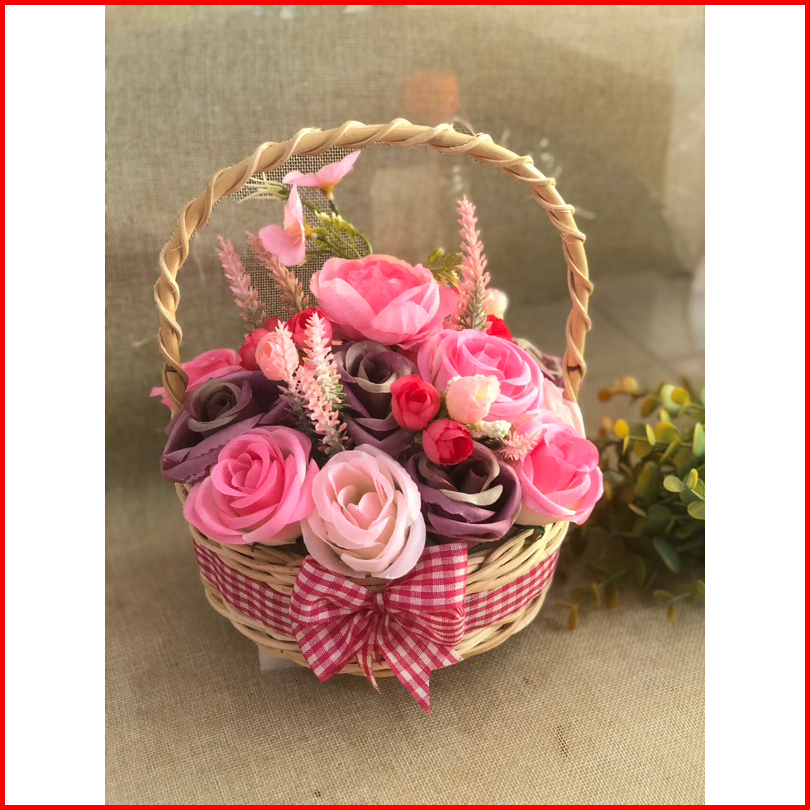 Keranjang Bunga Mawar Artificial Meja Tamu Bunga Mawar Hias Dekorasi Rumah
