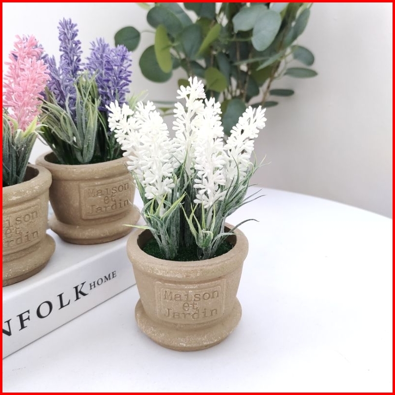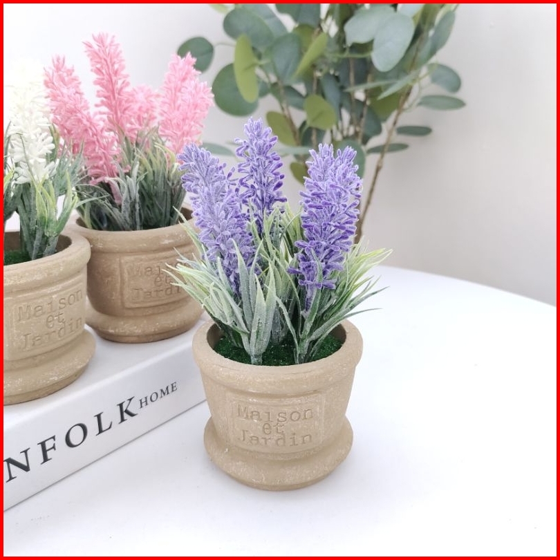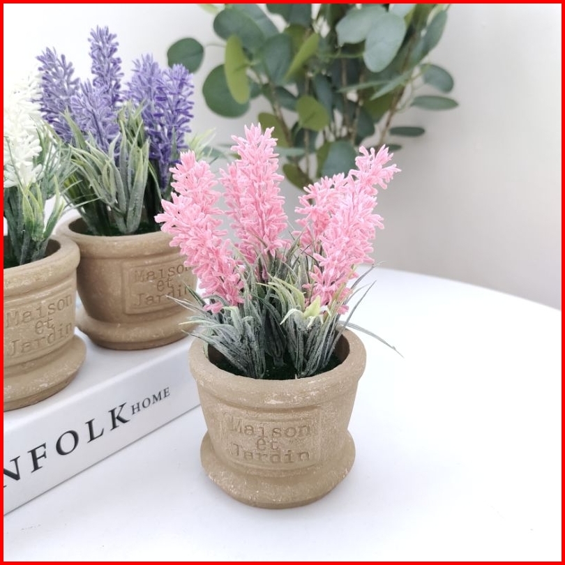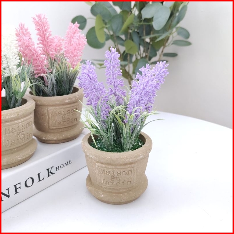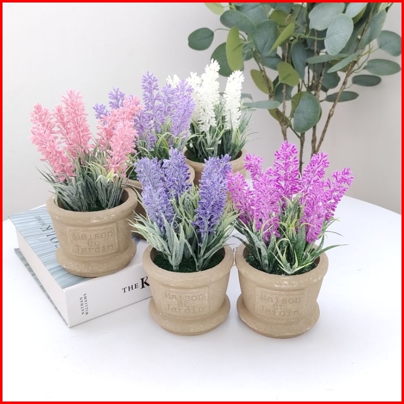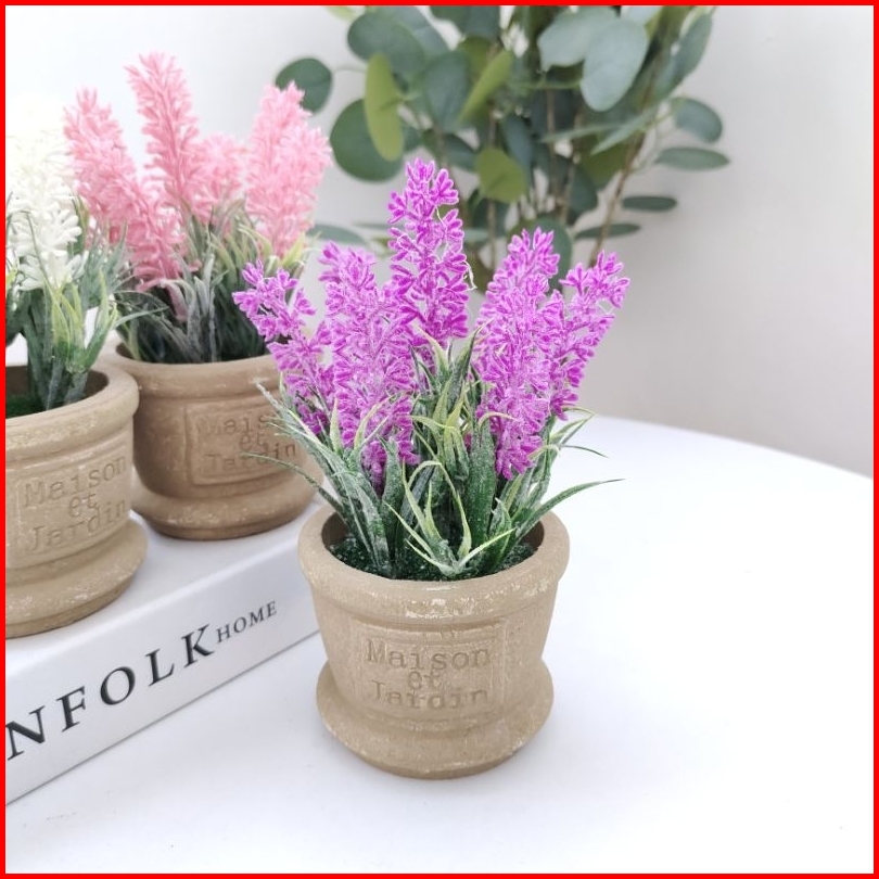 Bunga Artificial Lavender Mini Artificial Pot Vas Pulp Coklat Bunga Palsu Plastik Hias Pajangan Dekorasi Properti Foto G