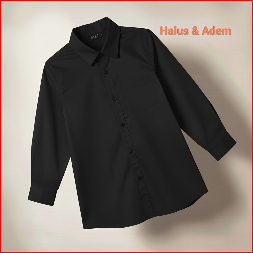 Al-za Kemeja Anak Polos Lengan Panjang Usia 3 -14 Tahun Bahan Vito Signature Adem Halus
