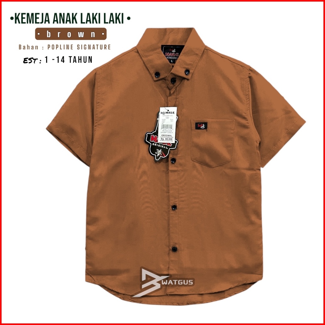 Trend 2025 Kemeja Anak Laki Laki Polos Lengan Pendek Usia 1-14 Tahun