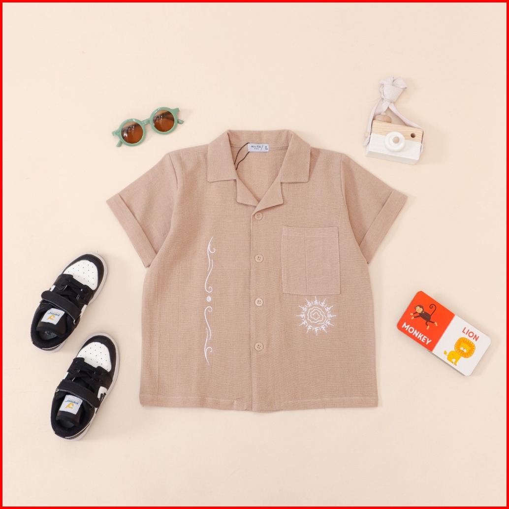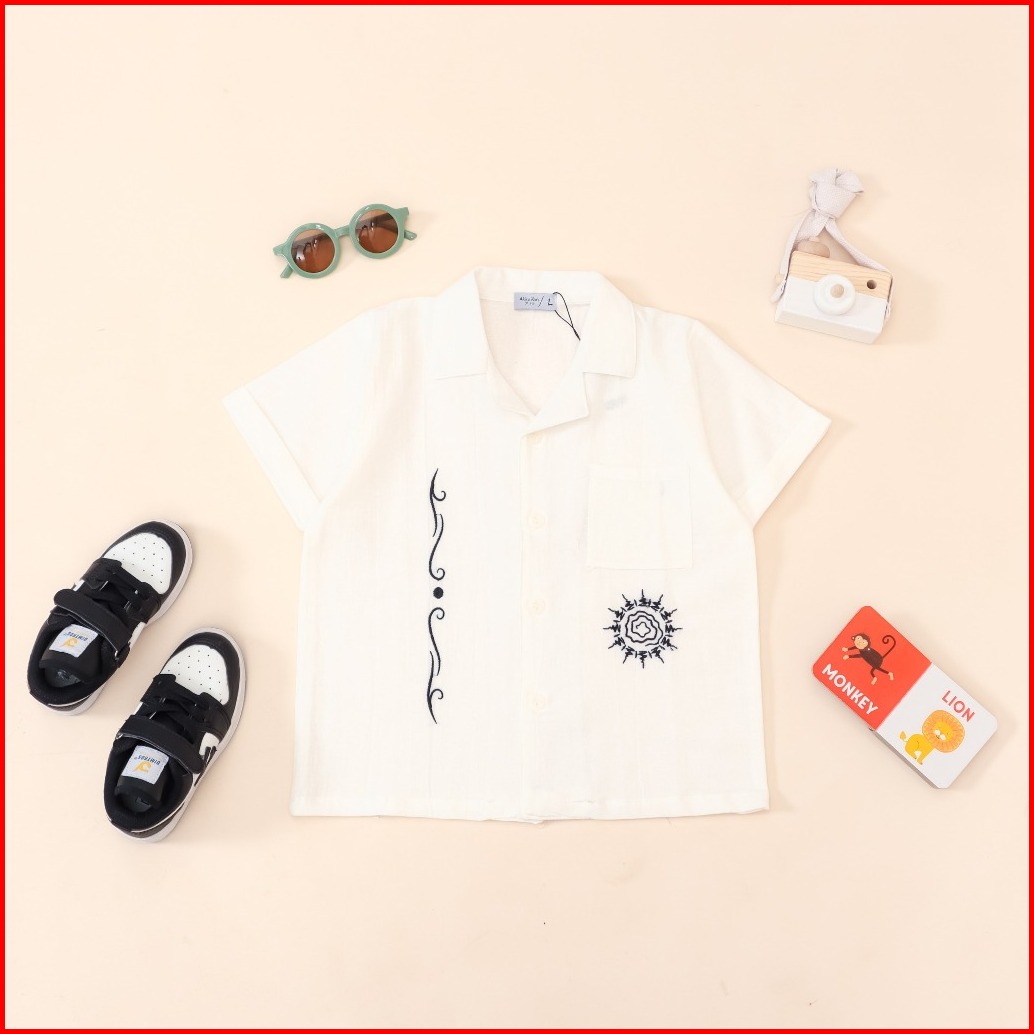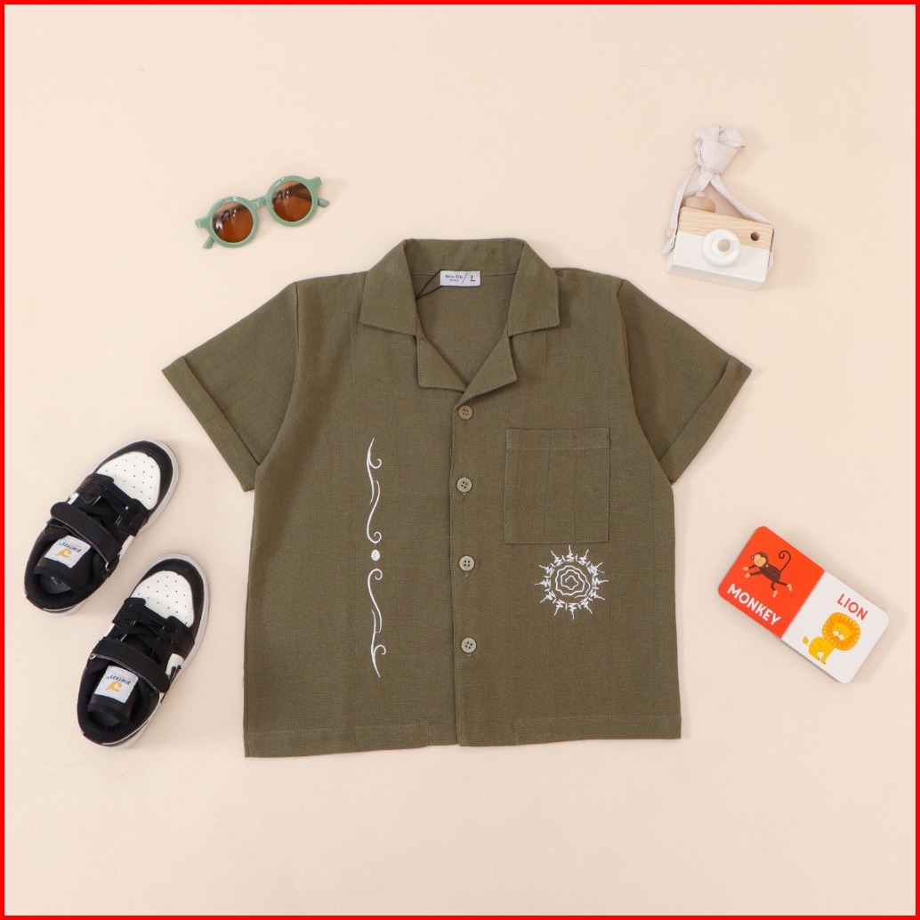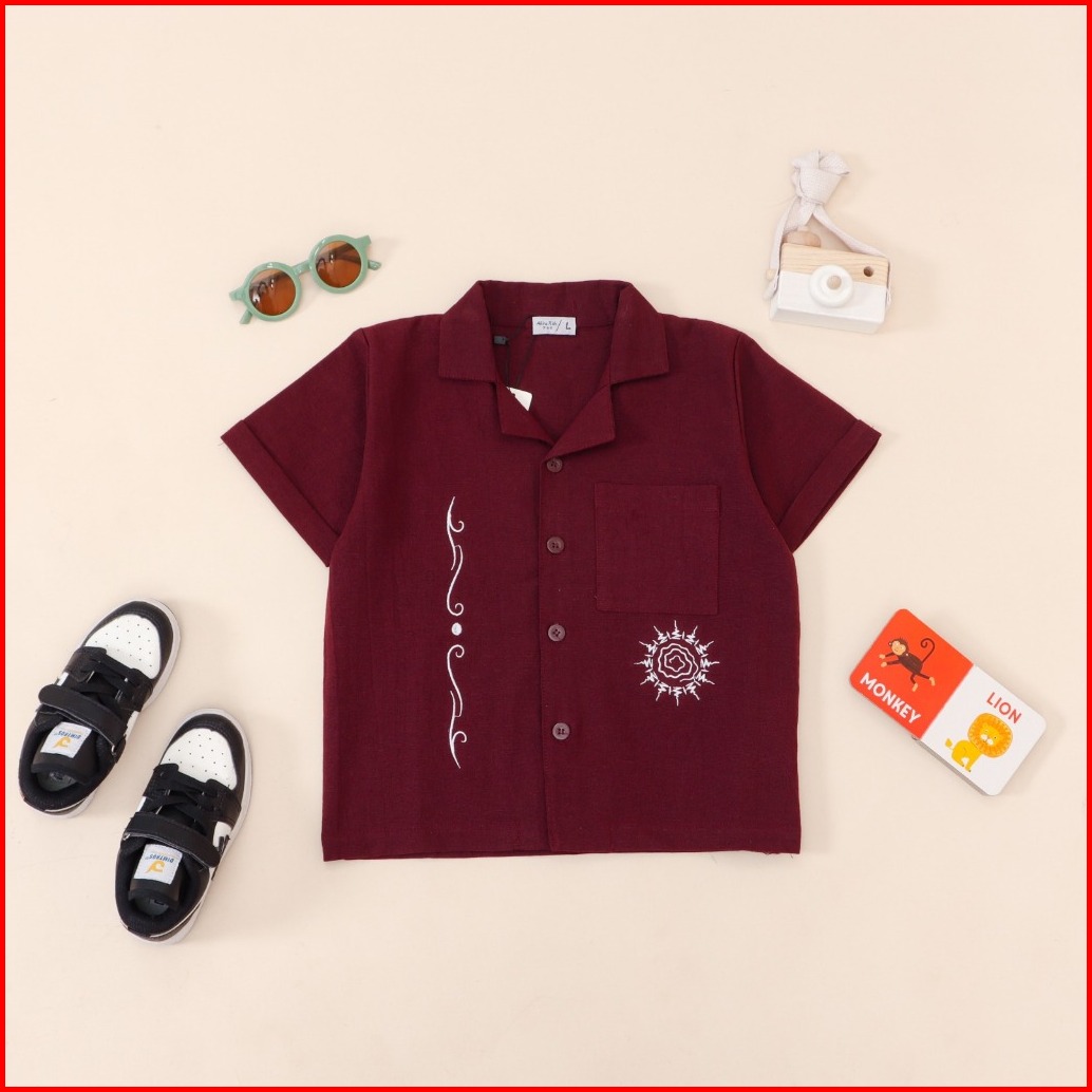 Akira Kemeja Anak Linen Usia 2-12 Tahun Motif Bordir Premium Cotton Linen Texture