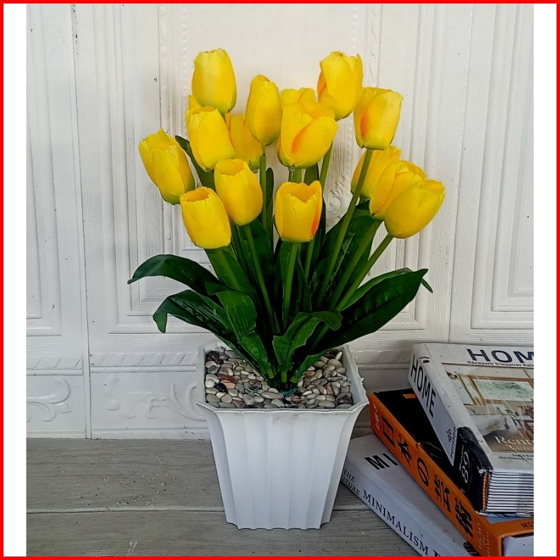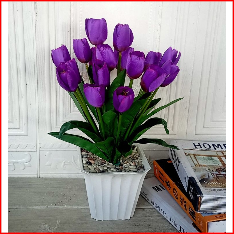 Bunga Tulip Artificial Vas Kotak Bunga Tulip Plastik Vas Kotak