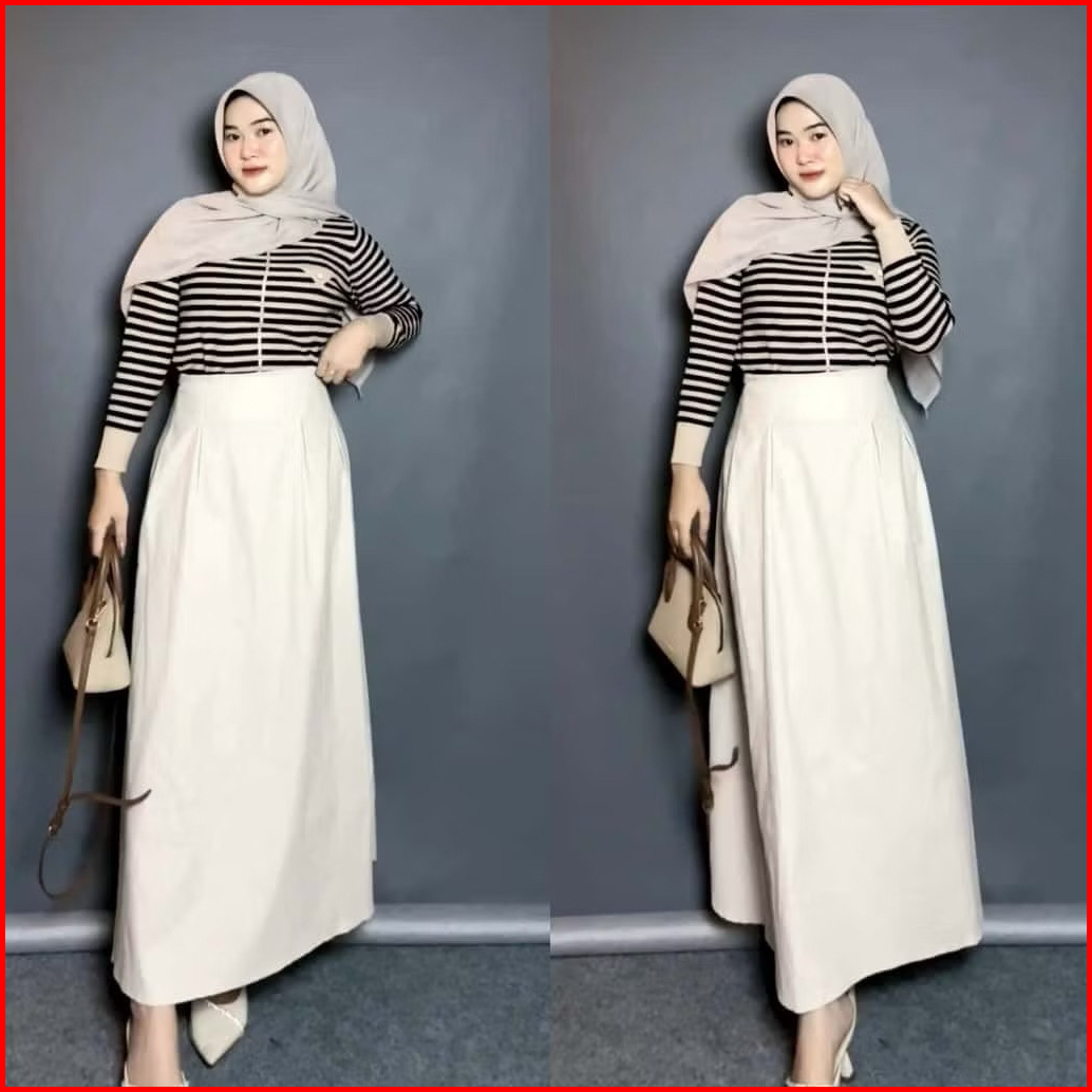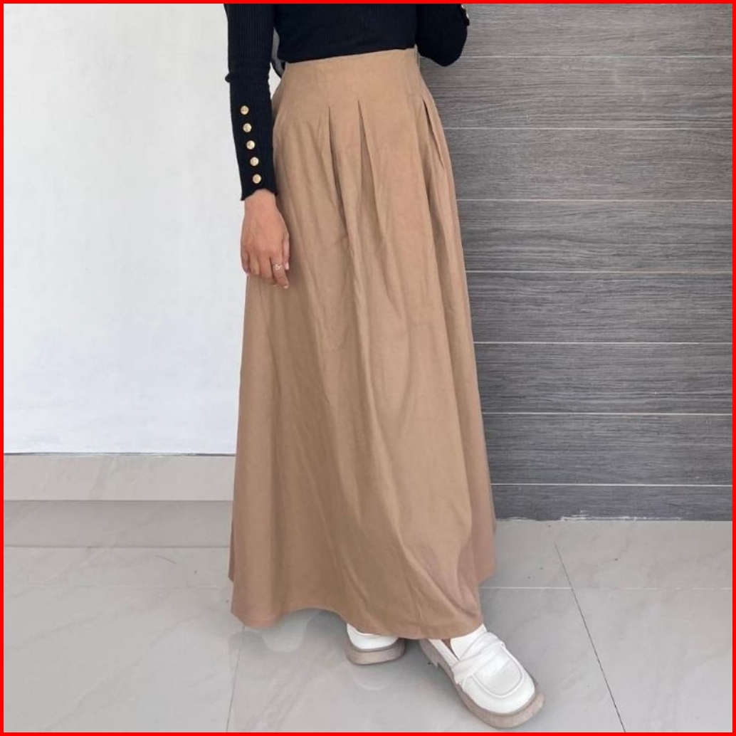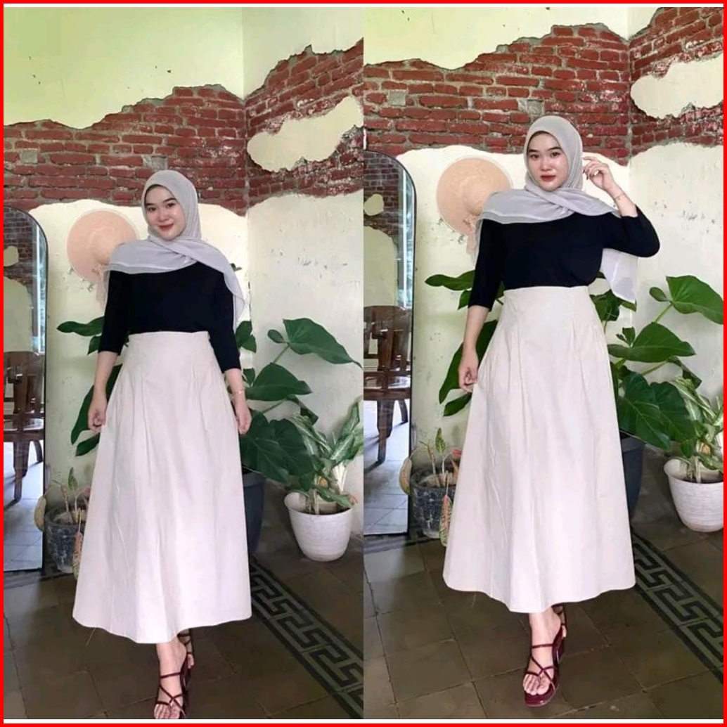 Rok Panjang Wanita Muslimah A-line High Waist Flare Skirt Modis Kekinian Elegan Bisa Untuk Kerja Casual