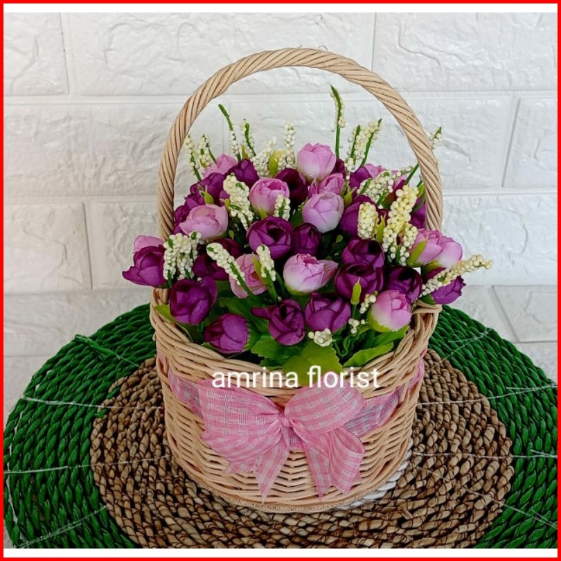 Bunga Mawar Kuncup Artificial Vas Keranjang Keranjang Bunga Mawar Kuncup Hiasan Bunga Mawar Palsu