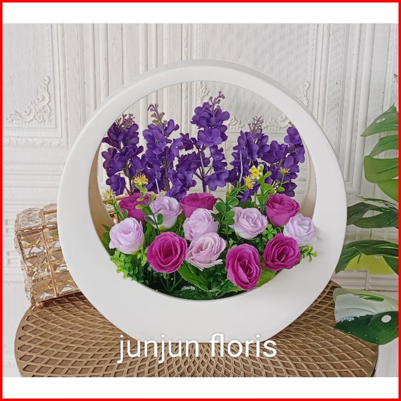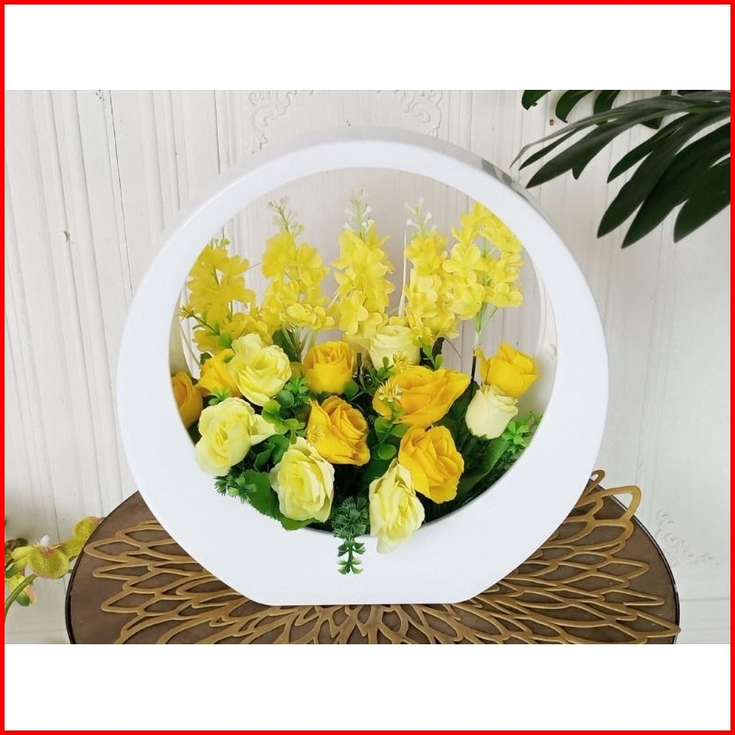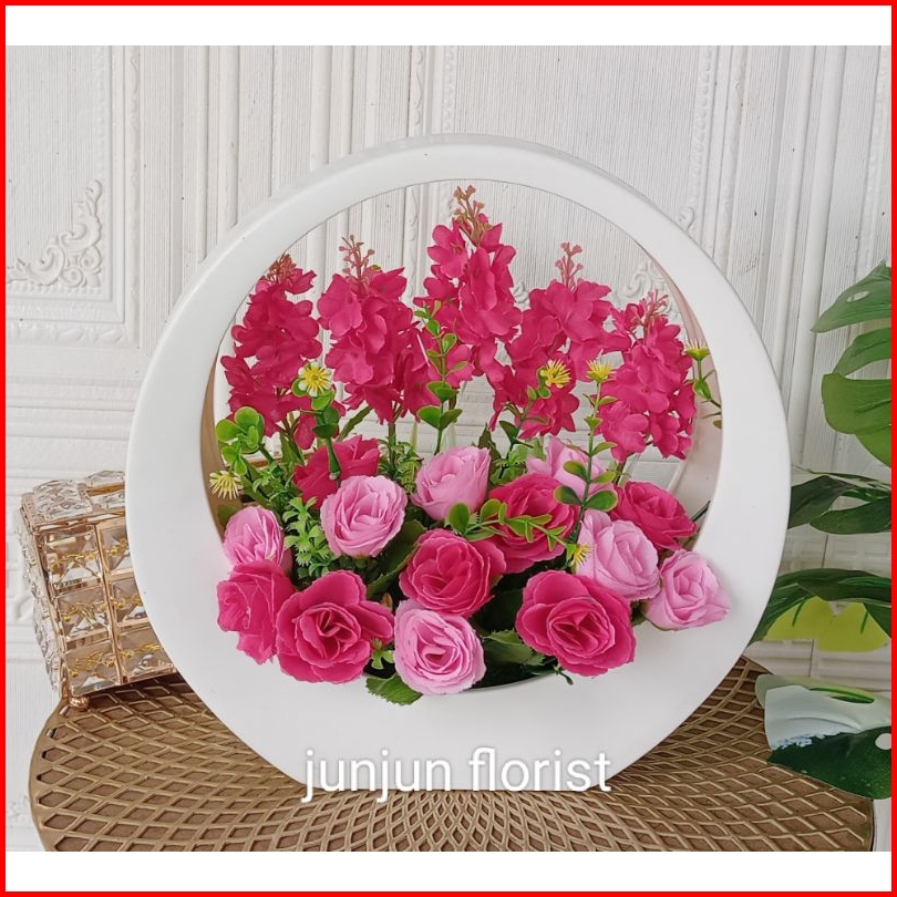 Bunga Mawar Artificial Vas Lingkar Plastik