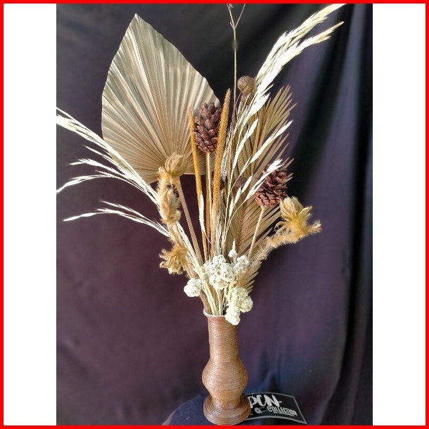 Paket Mini Bunga Kering Hiasan Meja Aesthetic Vas Guci Akar