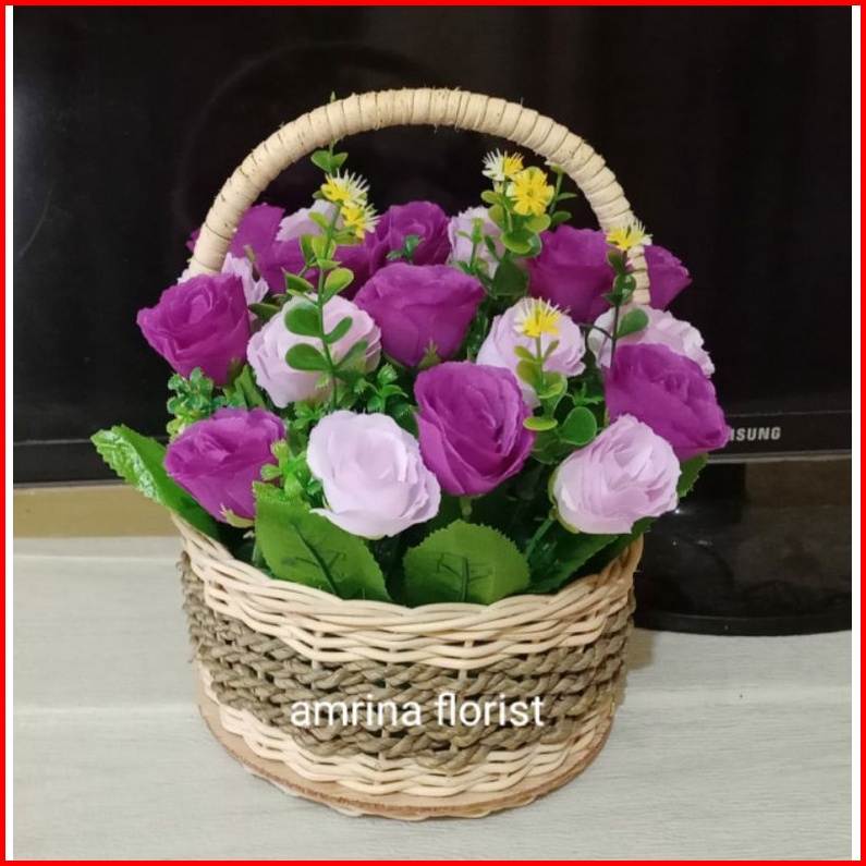 Bunga Mawar Artificial Vas Keranjang Rotan Bunga Mawar Hiasan Murahbunga