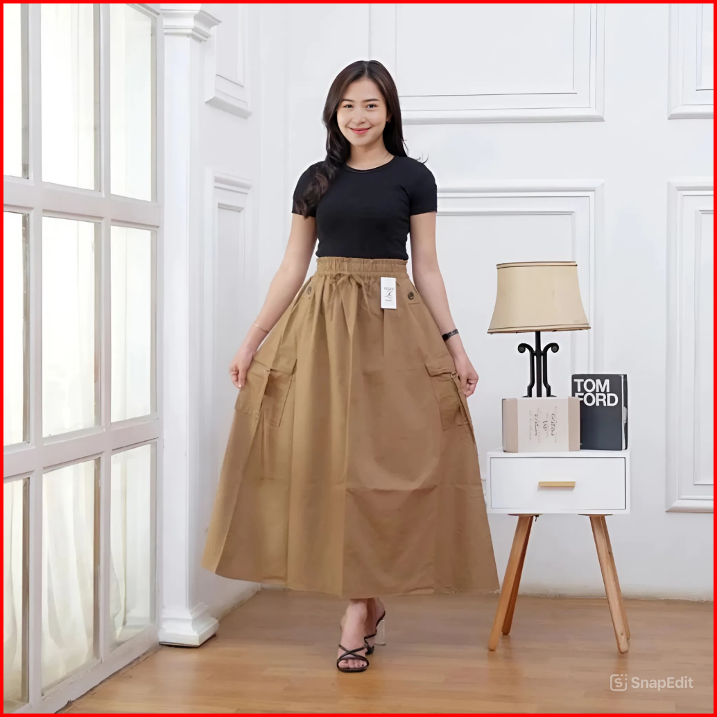 Rok Cargo Wanita Twilll Katun Premium Model Korean Style Tali Serut Terlaris