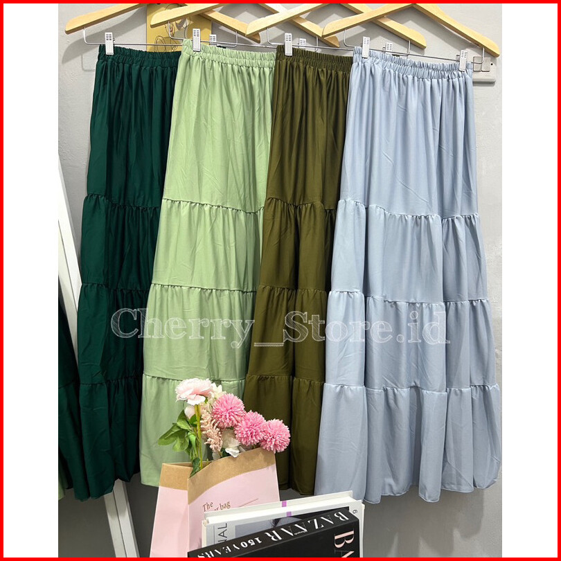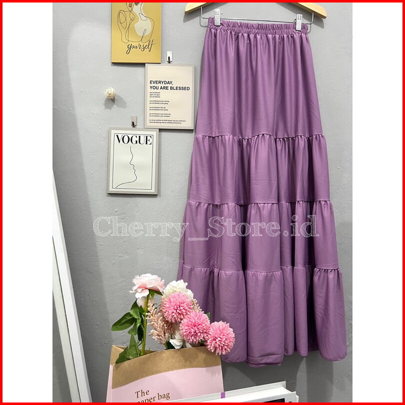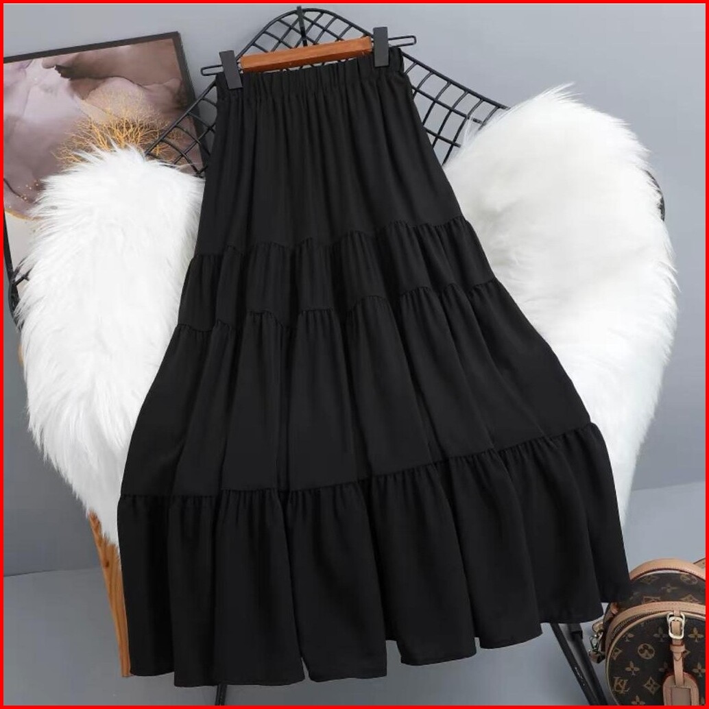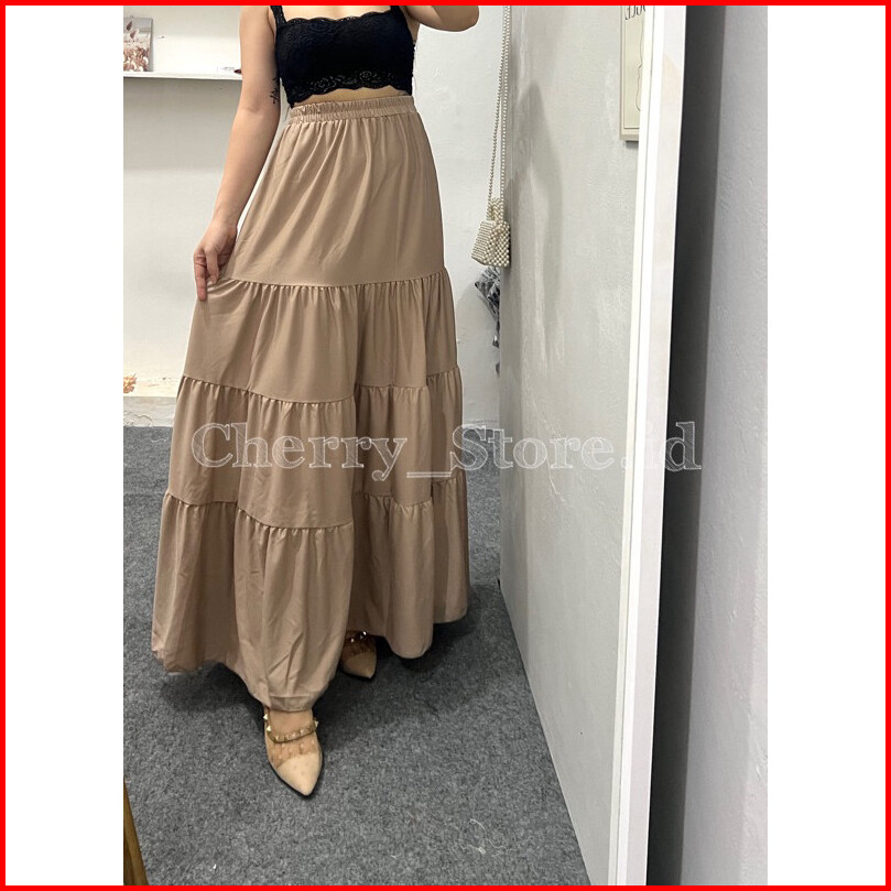 Cringkle Rok Panjang Beraksen 3 Susun Long Skirt Korean Style Rok Wanita Muslim