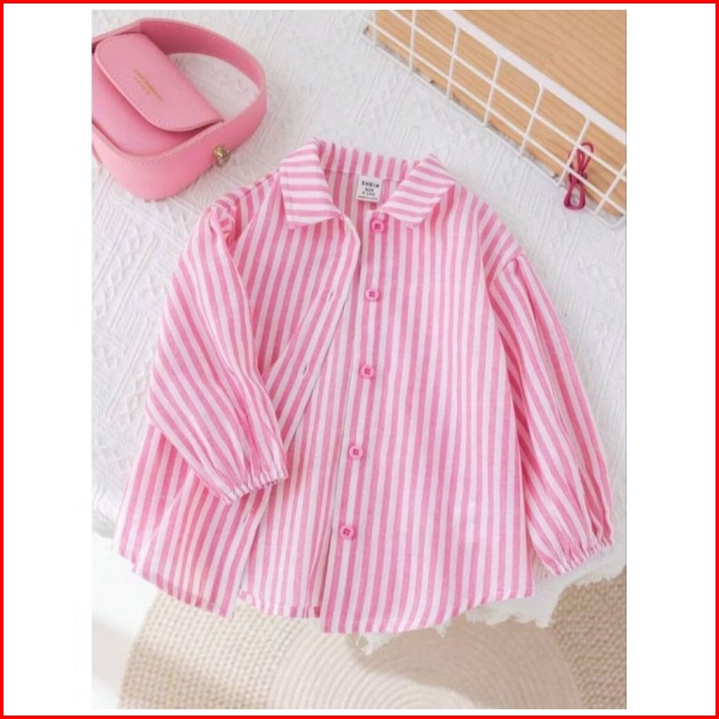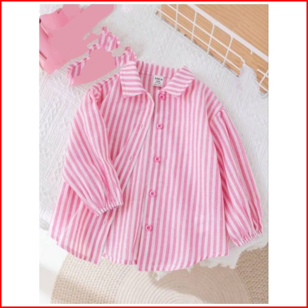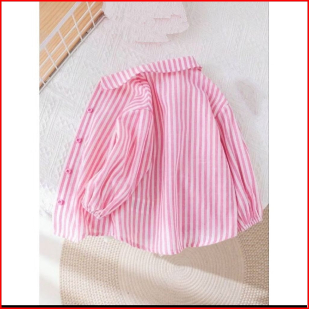 Fashion Kemeja Atasan Anak Perempuan Usia 4- 14 Tahun Motif Garis Piral Bahan Katun