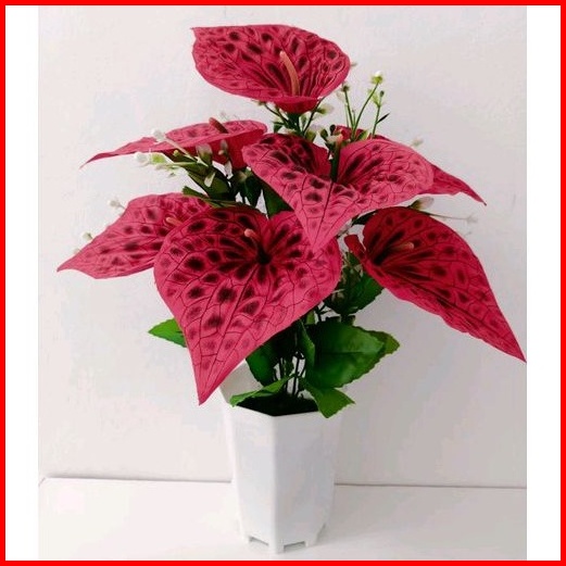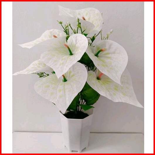 Bunga Aron Panda Artificial Dekorasi Dengan Pot Tirus