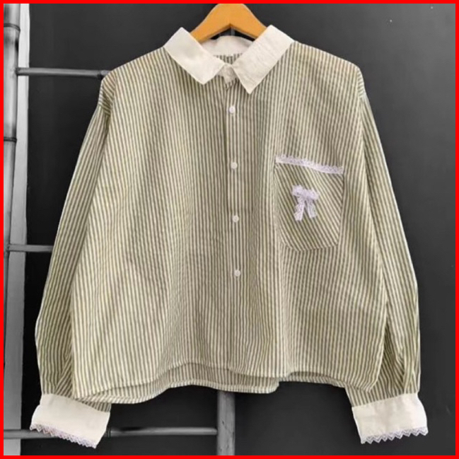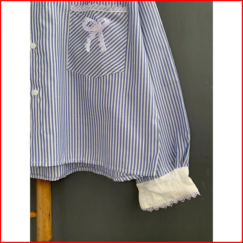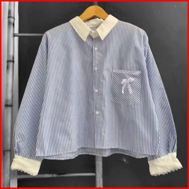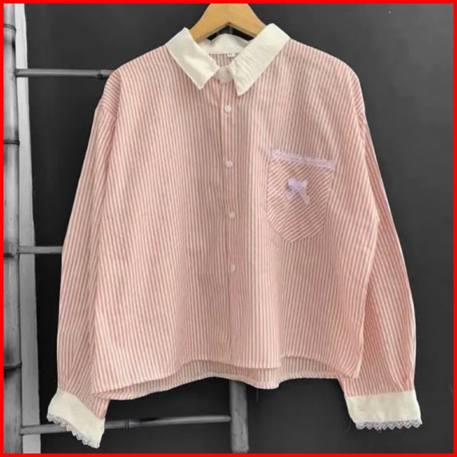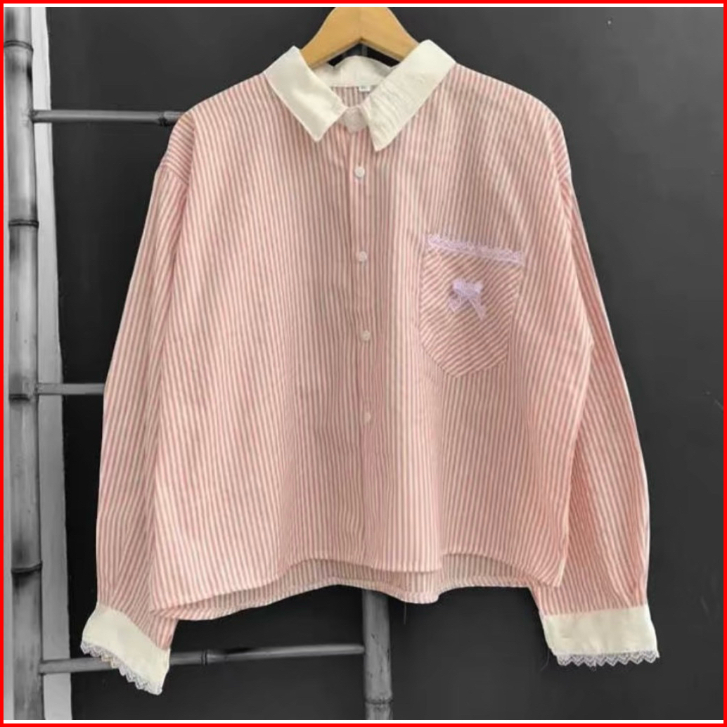 Kemeja Salur Wanita Salur Terbaru Kemeja Stripe Kombinasi Renda Kekinian Blouse Stripe Terdia Ukuran Ld 100cm-110cm-115c