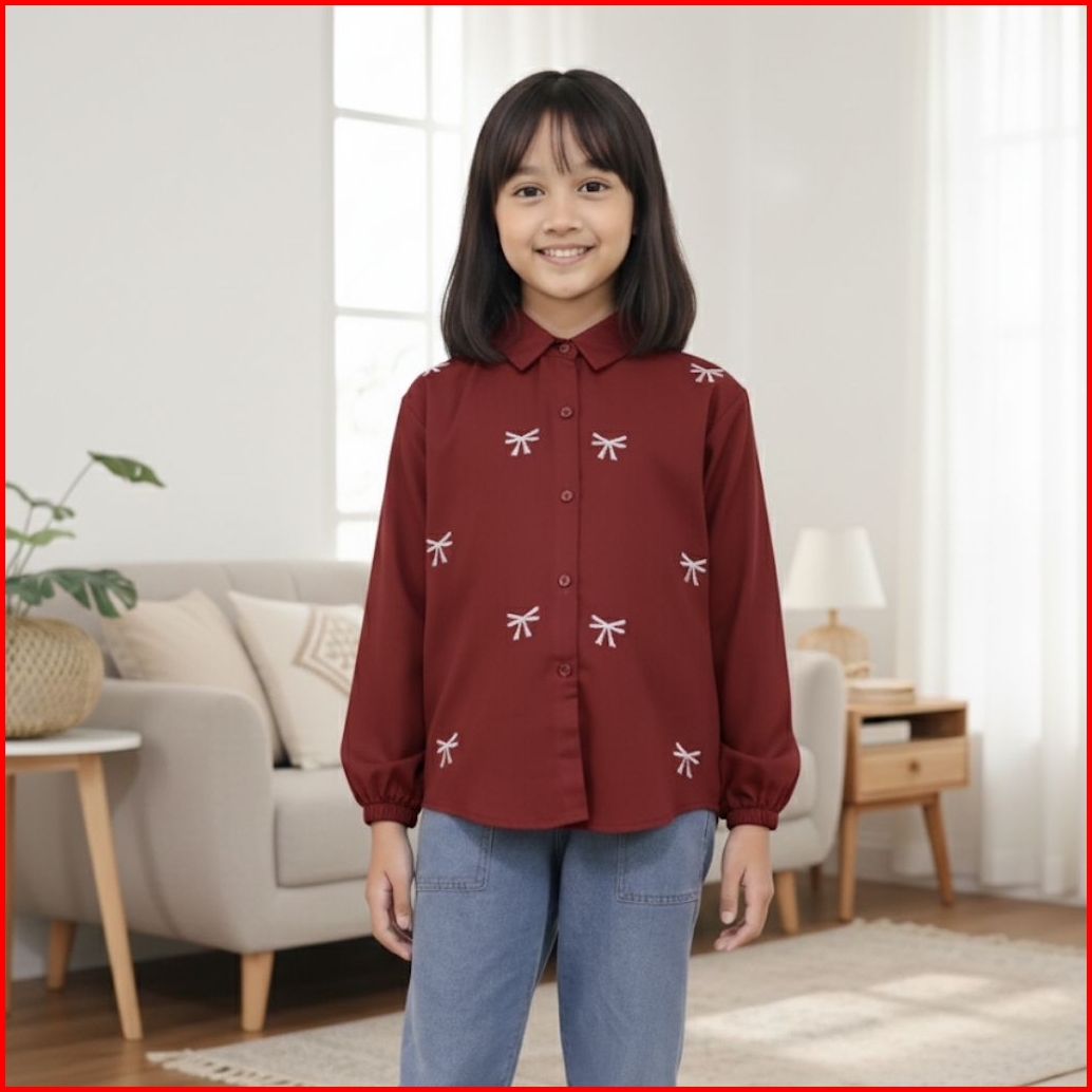 Baju Anak Perempuan Atasan Anak Kemeja Anak Bordir Motif Bunga Dan Pita Korean Style Bahan Rayon Twill Premium
