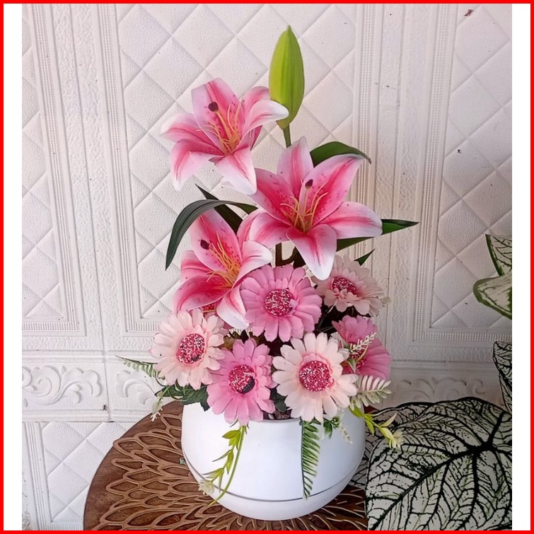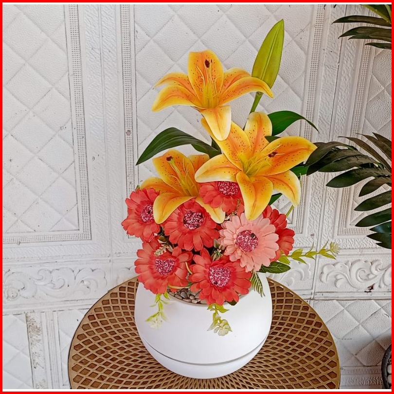 Bunga Lili Latex Mix Bunga Dahlia Artificial Vas Bola