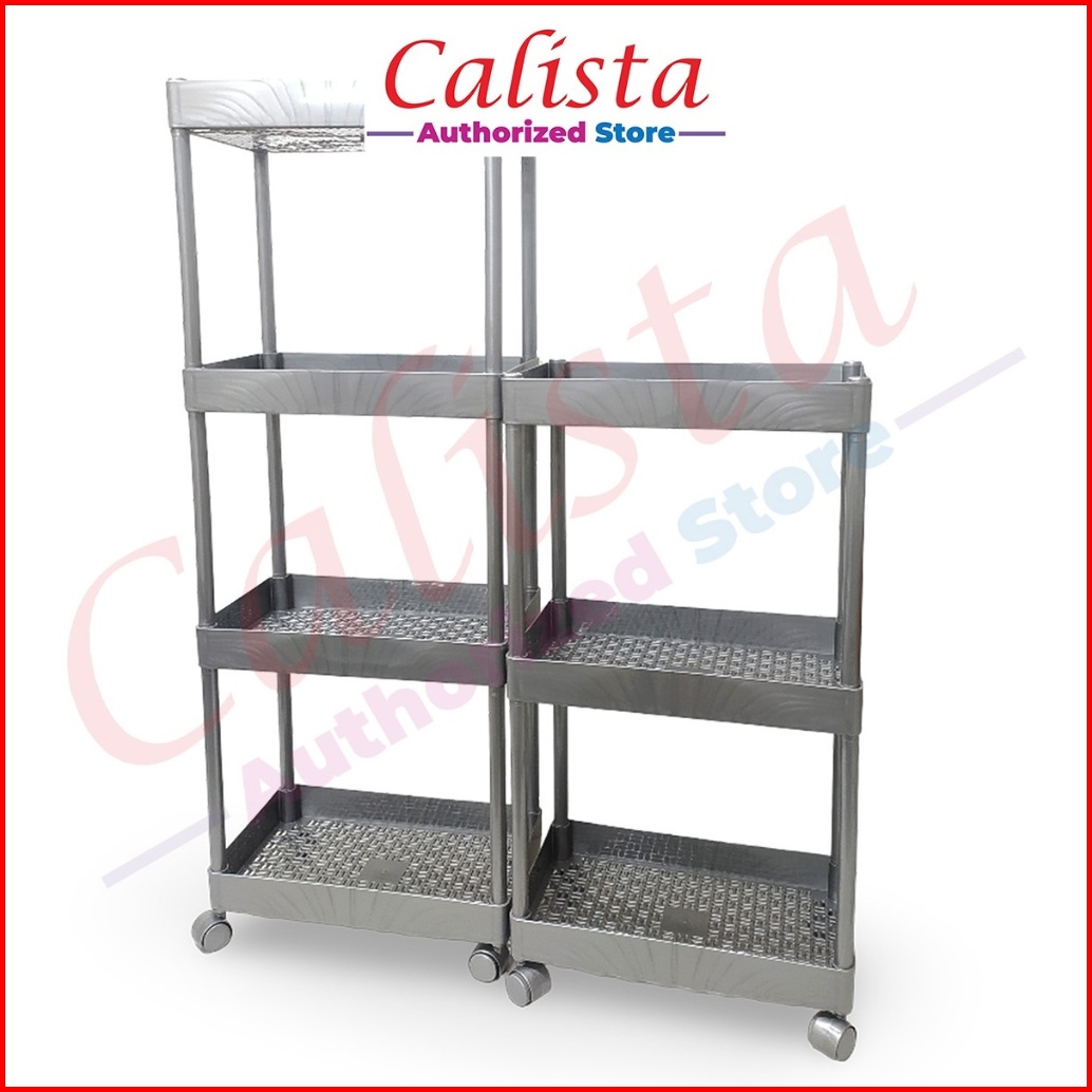 Rak Plastik Serbaguna Susun 3 Dan 4 Dengan Roda Rak Bumbu Dapur Rak Buku Portabel