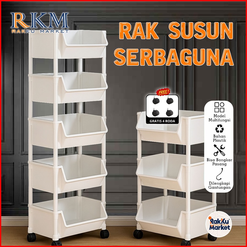 Rkm Rak Susun Serbaguna 3 4 5 Tingkat Dengan Roda Portable Rak Buku Mainan Rak Penyimpanan Lainnya