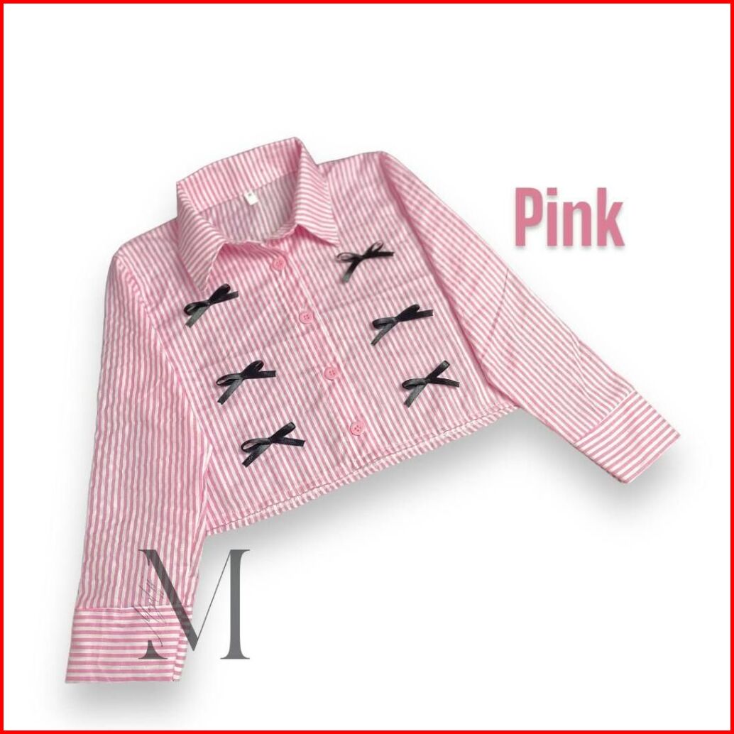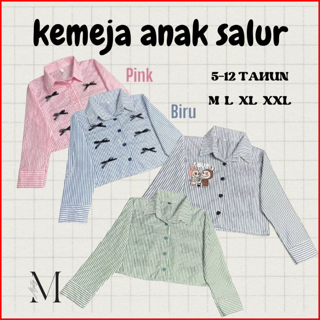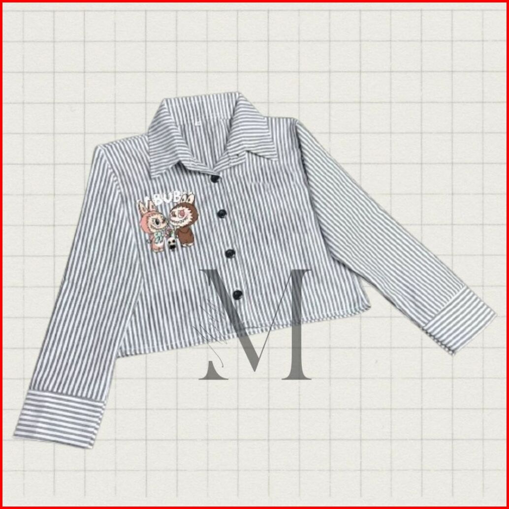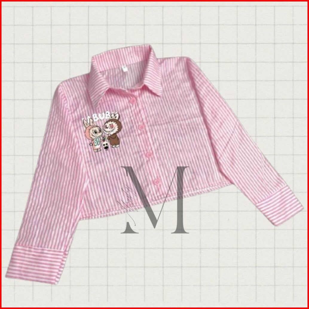 Kemeja Anak Perempuan Croptop Kids Zevanya Labubu Viral Bahan Katun Aksen Pita Salur 5-12 Tahun Baju Atasan Anak Korean