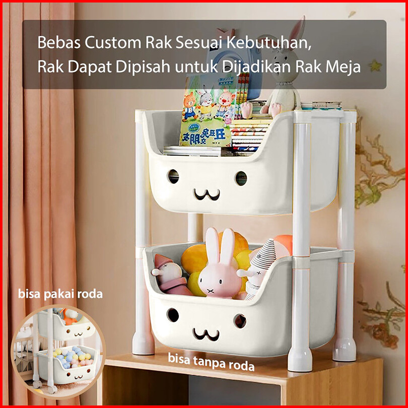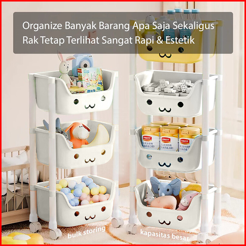 Giantmeng - Rak Susun Macaron Estetik Serbaguna Beroda Rak Mainan Buku Dapur Organizer