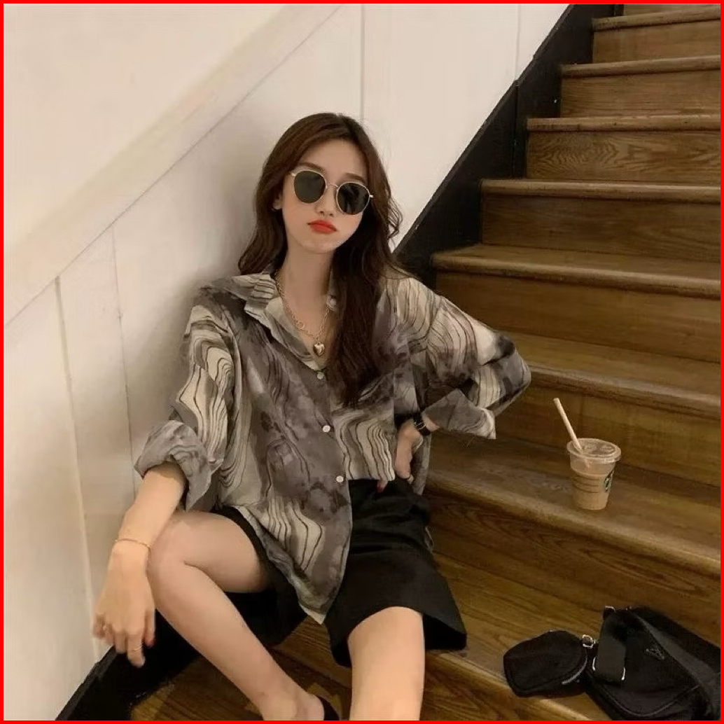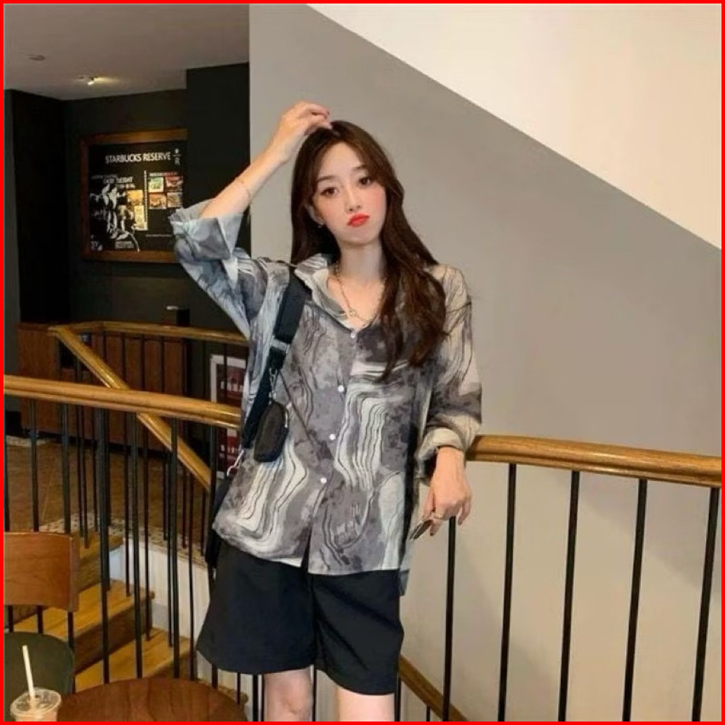 Kemeja Abstrak Vintage Shirt Lengan Panjang Wanita Katun