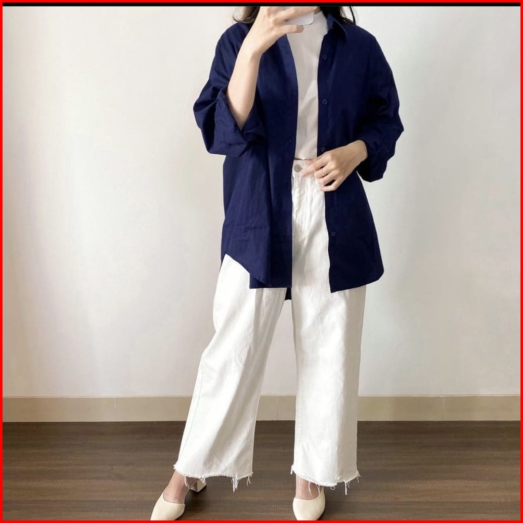 Kemeja Oversize Shirt Polos Pocket Basic Wanita Premium
