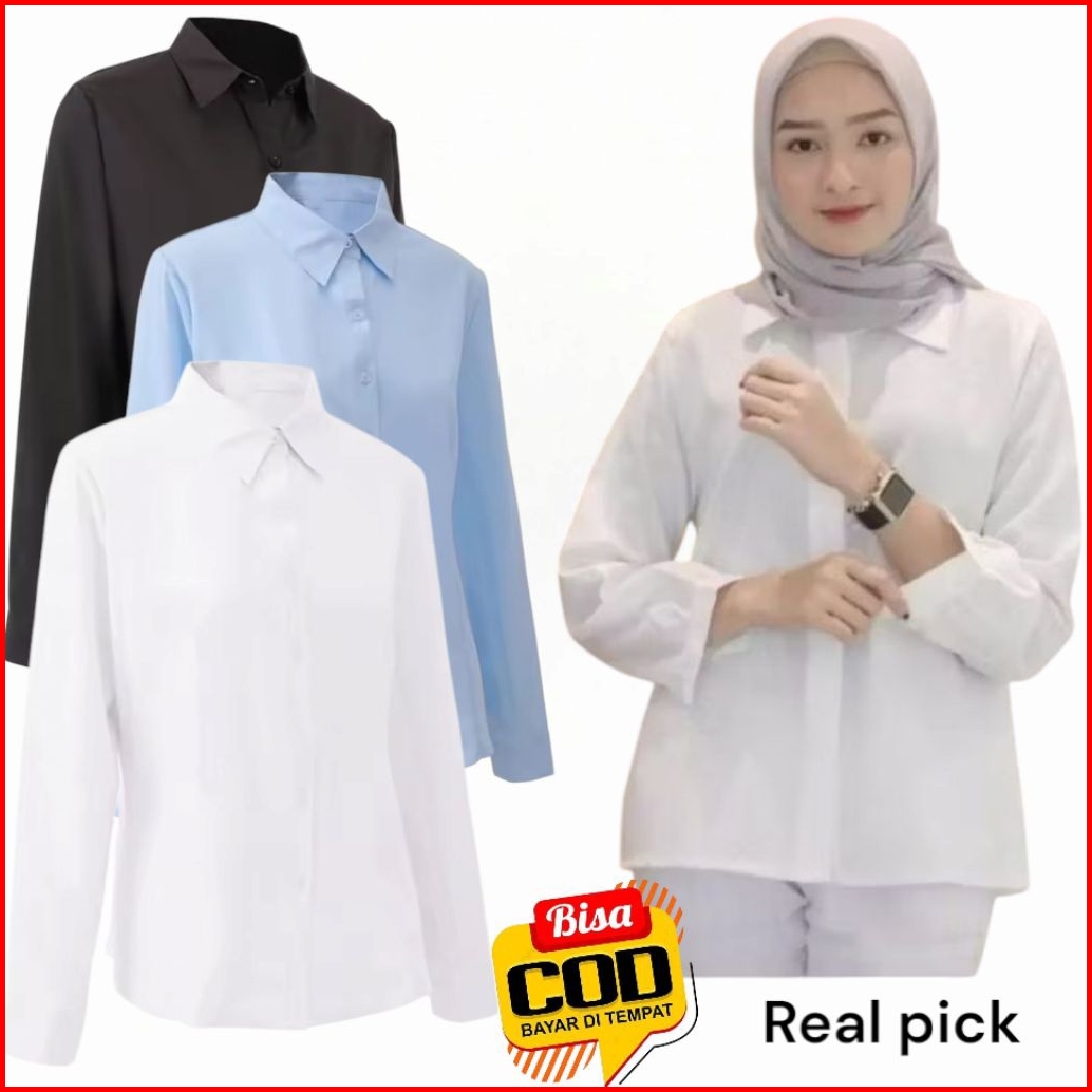 Kemeja Wanita Putih Lengan Panjang - Baju Kemeja Putih Wanita Hem Kantor Formal Baju Ospek Big Size Jumbo