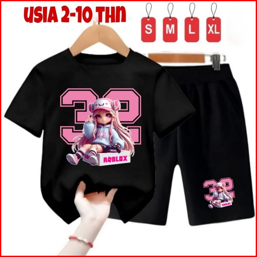 Setelan Kaos Anak Prempuan Cewe .gambar Sablon Roblox32.