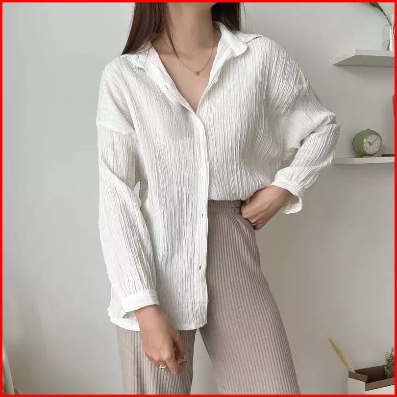Kemeja Kasual Lady Oversize Shirt Atasan Wanita Terbaru Basic Shirt Polos Blouse