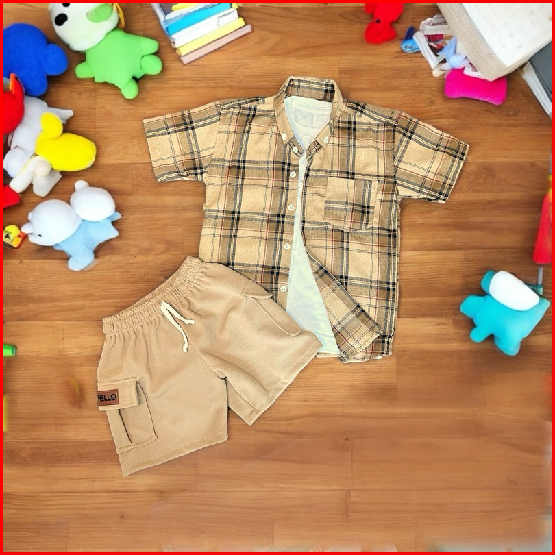 Setelan Anak Laki Laki Usia 1-6 Tahun Kemeja Flanel Lengan Pendek Hanya Kemeja Dan Celana