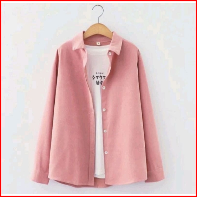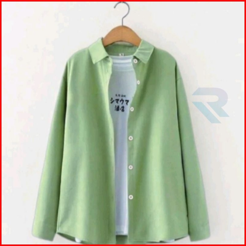 Kemeja Wanita Katun Basic Lengan Panjang Kasual Warna Hitam Putih Army Biru Atasan Wanita Kerja