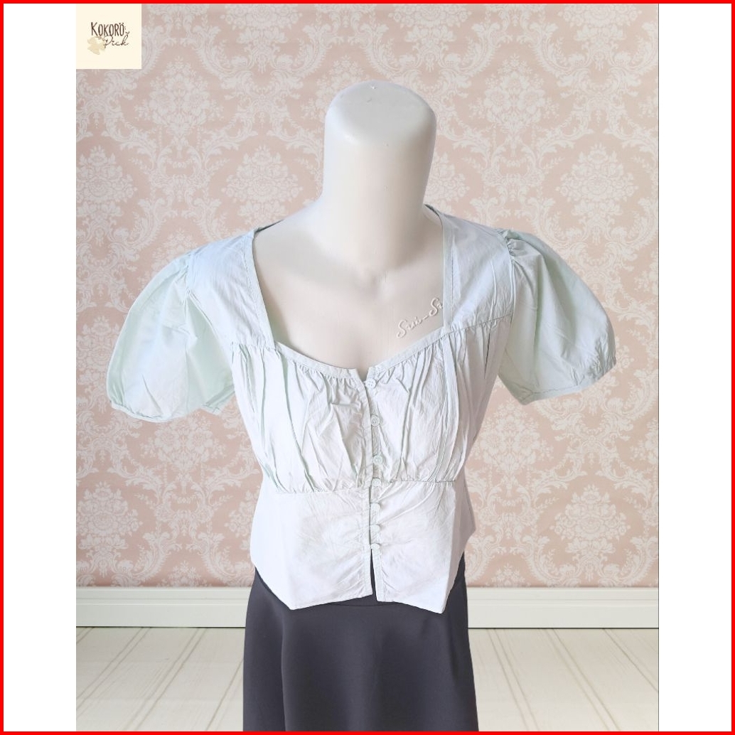 Atasan Wanita Sailor Slimfit Top Lengan Pendek Dengan Bahan Katun Poliester Bertekstur Nyaman Pastel Gaya Retro