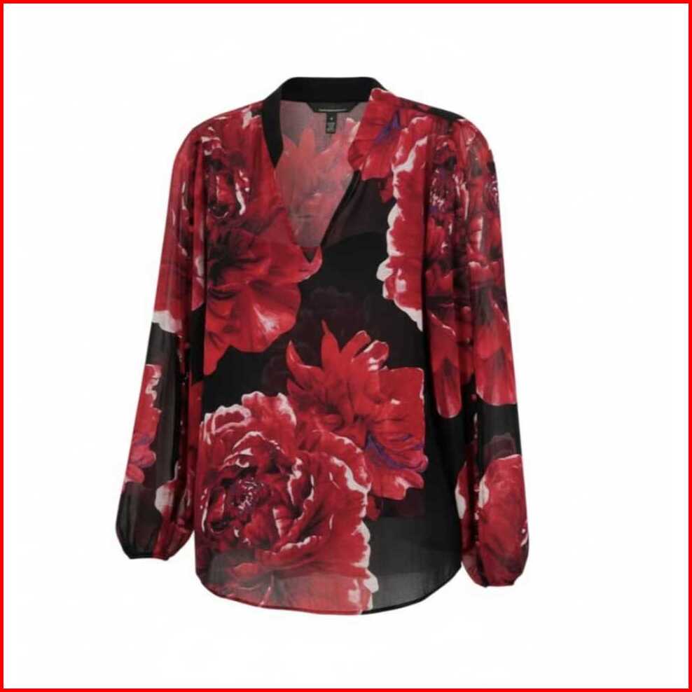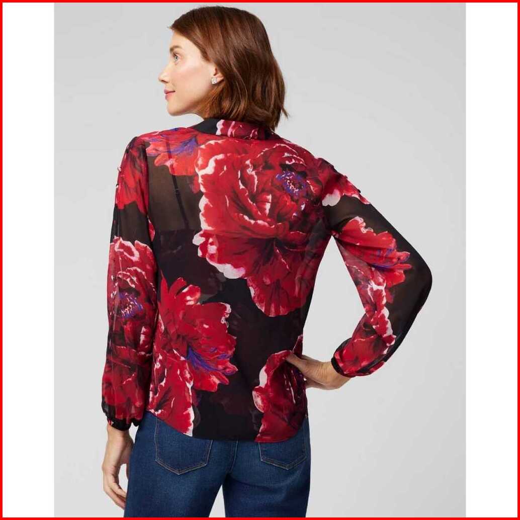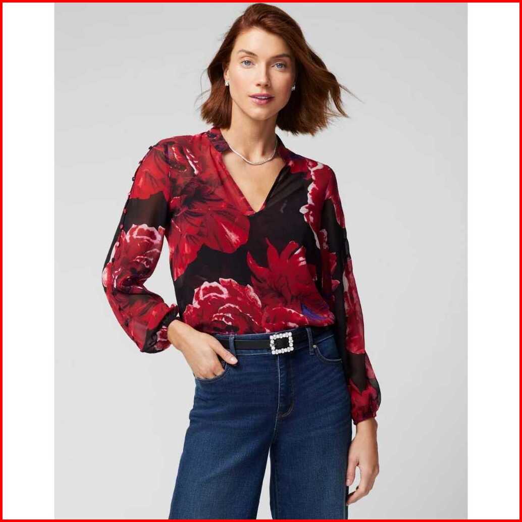 Blouse White House Black Market Long Sleeve Button Shoulder Blouse