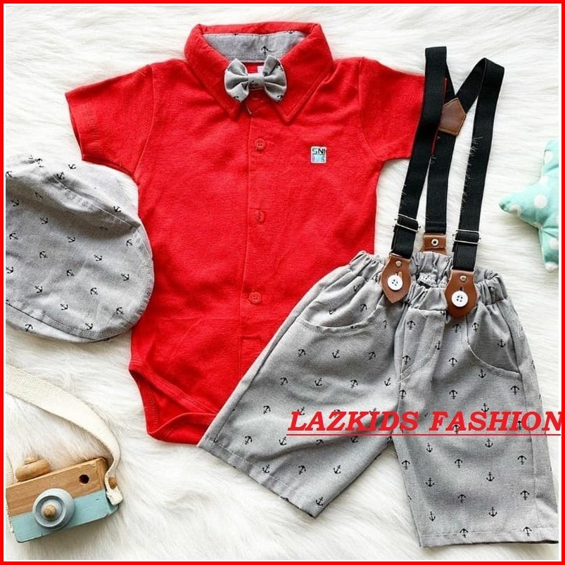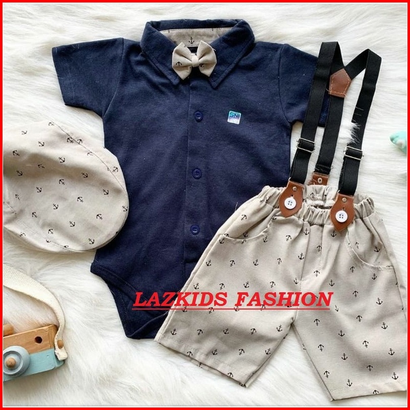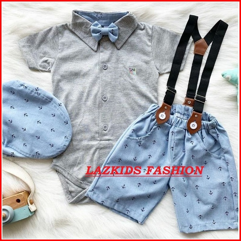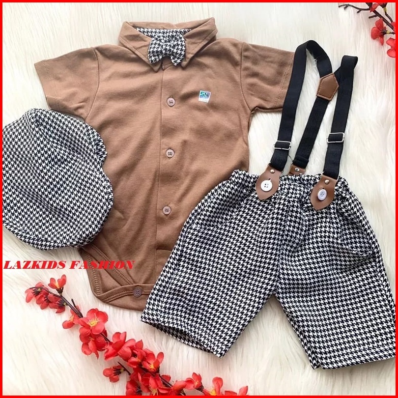 Setelan Baju Jumper Bayi Laki Laki Br4nded Motif Jumper Suspender Usia Anak 0-9bulan